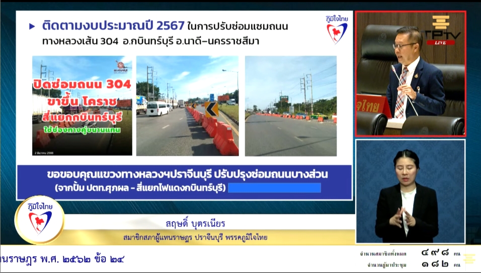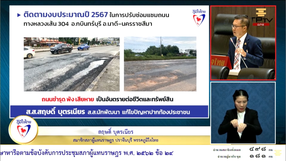 สส.สฤษดิ์" บนหน่วยงานที่เกี่ยวข้องเร่งซ่อมแซมถนน 304 และ แก้ไขปัญหาตลิ่งพัง อ.กบินทร์บุรี จ.ปราจีนบุรี