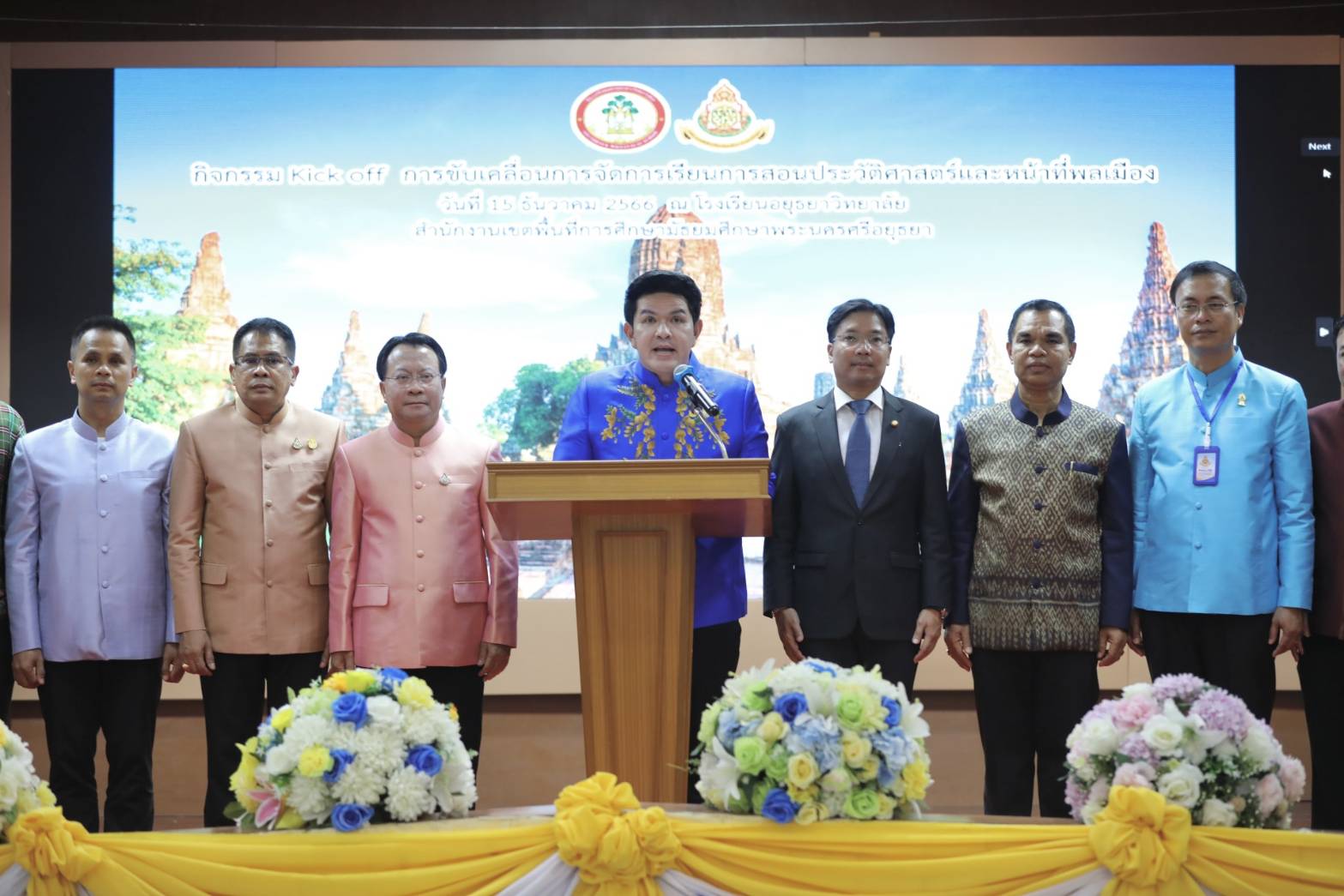 "ในวันนี้ เรามีกิจกรรม "Kick off การขับเคลื่อนการจัดการเรียนรู้ทางประวัติศาสตร์และหน้าที่พลเมือง" ของศธ.โดยการดำเนินการตาม MOU ร่วมกันทั้ง 4 กระทรวง ซึ่ง พล.ต.อ.เพิ่มพูน ชิดชอบ รมว.ศึกษาธิการ ได้เน้นย้ำถึงเรื่องนี้ โดยเริ่มที่จังหวัดพระนครศรีอยุธยา เนื่องจากเป็นแหล่งสถานที่ประวัติศาสตร์ของชาติไทย และยังมีกระแสของละครในปัจจุบันเข้ามาหนุนเสริม สำหรับการขับเคลื่อนต่อไปนั้น เราจะพัฒนาบุคลากร ทั้งครูผู้สอน ผู้บริหารโรงเรียน และผู้บริหารเขตพื้นที่ฯ ทั้ง 4 ภูมิภาค ให้มีแนวการสอนประวัติศาสตร์ที่ทันสมัย เพื่อให้เด็กได้แสดงออกถึงภูมิปัญญาท้องถิ่น โดยมีการจัดสรรงบประมาณให้ทุกจังหวัด ซึ่งแต่ละจังหวัดก็จะมีประวัติศาสตร์ท้องถิ่นของตนเองแตกต่างกันไป พร้อมทั้งพัฒนาสื่อการเรียนการสอนโดยใช้เทคโนโลยีที่ทันสมัย เพื่อให้เด็กๆ เกิดความสนใจ เช่น การ์ตูน Animation หรือการจัดการประกวดหนังสั้น เพื่อให้การเรียนการสอนทันสมัยมากยิ่งขึ้น นอกจากนี้ กิจกรรมเหล่านี้ยังเชื่อมโยงกับ Soft Power ทั้งเรื่องของอาหารการกิน และการแต่งกาย อีกด้วย ซึ่ง รมว.ศธ. ได้จัดตั้งคณะทำงานขึ้นเพื่อขับเคลื่อนเรื่องนี้โดยเฉพาะ โดยจะมีการติดตาม ประเมินผล และสร้างตัวชี้วัด เพื่อให้การขับเคลื่อนนี้ประสบความสำเร็จเห็นผลอย่างเป็นรูปธรรม" รมช.ศธ. กล่าว