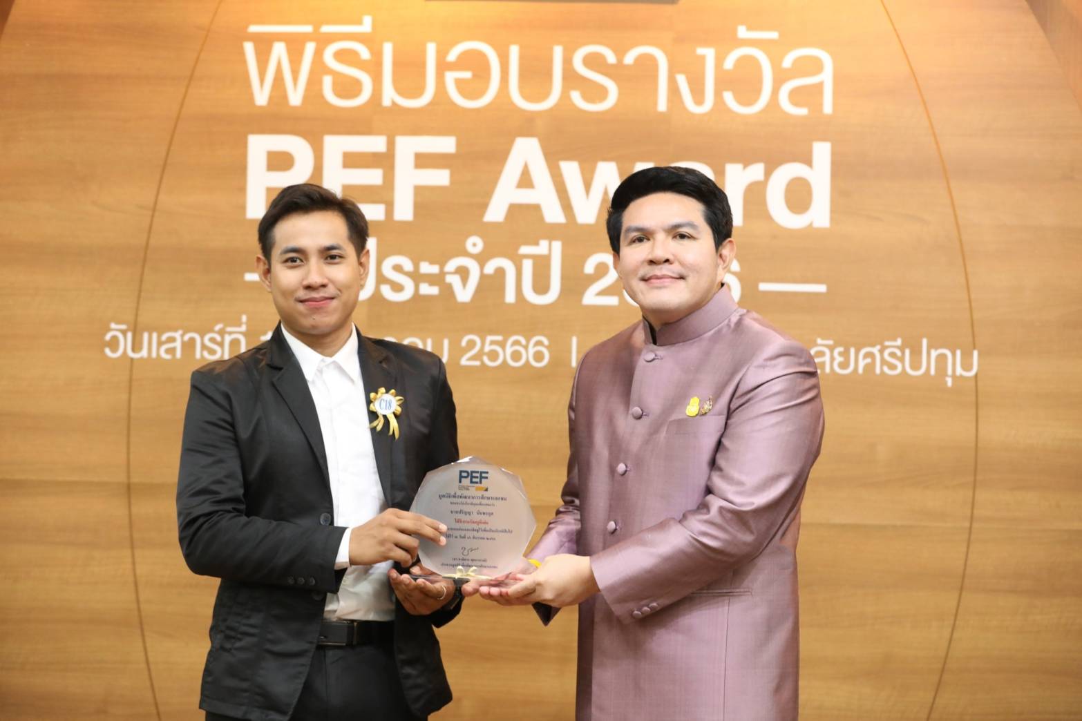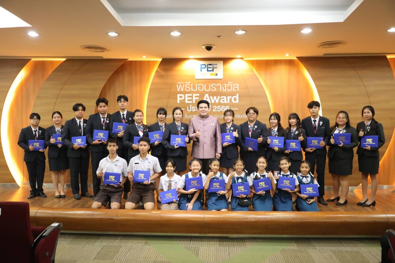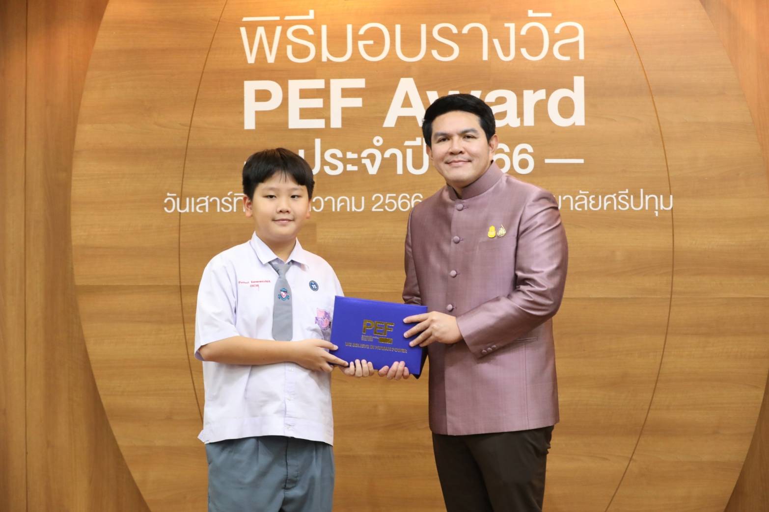 นายสุรศักดิ์ กล่าวภายหลังมอบโล่รางวัลและประกาศนียบัตร ว่า ตนมีความยินดีเป็นอย่างยิ่ง ที่ได้มาเป็นประธานในพิธีมอบรางวัลโครงการ PEF Award for ALL ประจําปี 2566 ในวันนี้ ทั้งยังขอแสดงความยินดีกับท่านผู้บริหารสถานศึกษา ผู้บริหารสถานประกอบการ บุคลากรทางการศึกษา และลูกๆนักเรียน ที่ได้รับรางวัลในครั้งนี้ นับเป็นความสําเร็จและความภาคภูมิใจที่ทุกคน ได้ทุ่มเทกําลังกาย กําลังใจ กําลังความคิด อันนํามาซึ่งชื่อเสียงและเกียรติคุณที่ได้รับ ซึ่งถือเป็นพลังสําคัญของการขับเคลื่อนภารกิจด้านการศึกษา เช่นเดียวกับสถานประกอบการก็ถือเป็นอีกหนึ่งพลังสําคัญในการร่วมกันพัฒนาการศึกษาไทย ให้บรรลุเป้าหมายที่เน้นประโยชน์สุขของประชาชน สอดคล้องกับนโยบายของกระทรวงศึกษาธิการ “เรียนดี มีความสุข” เพราะเมื่อเรามีความสุขกับการเรียน การทำงาน ผลที่ตามมาคือทั้งการเรียนและงานก็จะออกมาดีเพราะเราได้ทำในสิ่งที่มีความสุข