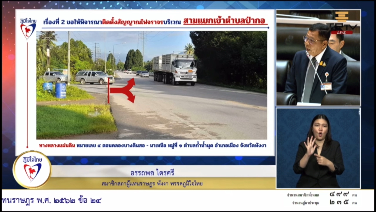 20 ธันวาคม 2566 เวลา 16:52“อรรถพล” นำปัญหา ย้ายจุดยูเทิร์น และไฟจราจร หารือเร่งดำเนินการแก้ไข เพื่อ ปชช. จ. พังงาวันที่ 20 ธันวาคม 2566 นายอรรถพล ไตรศรี สมาชิกสภาผู้แทนราษฎรจังหวัดพังงา เขต 2 พรรคภูมิใจไทย ได้นำปัญหาของประชาชนหารือ ในการประชุมสภาผู้แทนราษฎร ครั้งที่ 3 ได้มีการเร่งรัด กรมทางหลวง ย้ายจุดยูเทิร์นบนถนนทางหลวงจังหวัดหมายเลข 4 ตอนคลองบางดินสอนาเหนือ ที่อยู่ห่างจากจุดแยกบ้านบางยวน เนื่องจากจุดยูเทิร์นกับทางแยกไม่ตรงกัน ทำให้เกิดอุบัติเหตุบ่อยครั้ง ทั้งนี้ได้มีการย้ำถึงการเร่งแขวงทางหลวงพังงา ให้ติดตั้งสัญญาณไฟจราจรบนถนนสายบ้านป่ากอ ต.ถ้ำน้ำผุด อ.เมืองพังงา เนื่องจากเป็นเส้นทางที่ผู้คนใช้สัญจรไปมาเป็นจำนวนมากในช่วงเช้าและเย็น ทำให้เกิดอุบัติเหตุบ่อยครั้ง ยังย้ำอีกว่า “หน่วยงานที่เกี่ยวข้องควรพิจารณาความเหมาะสมของแนวทางการแก้ไขปัญหาในแต่ละประเด็น เพื่อให้เกิดประโยชน์สูงสุดต่อประชาชนในพื้นที่” แชร์บทความนี้: