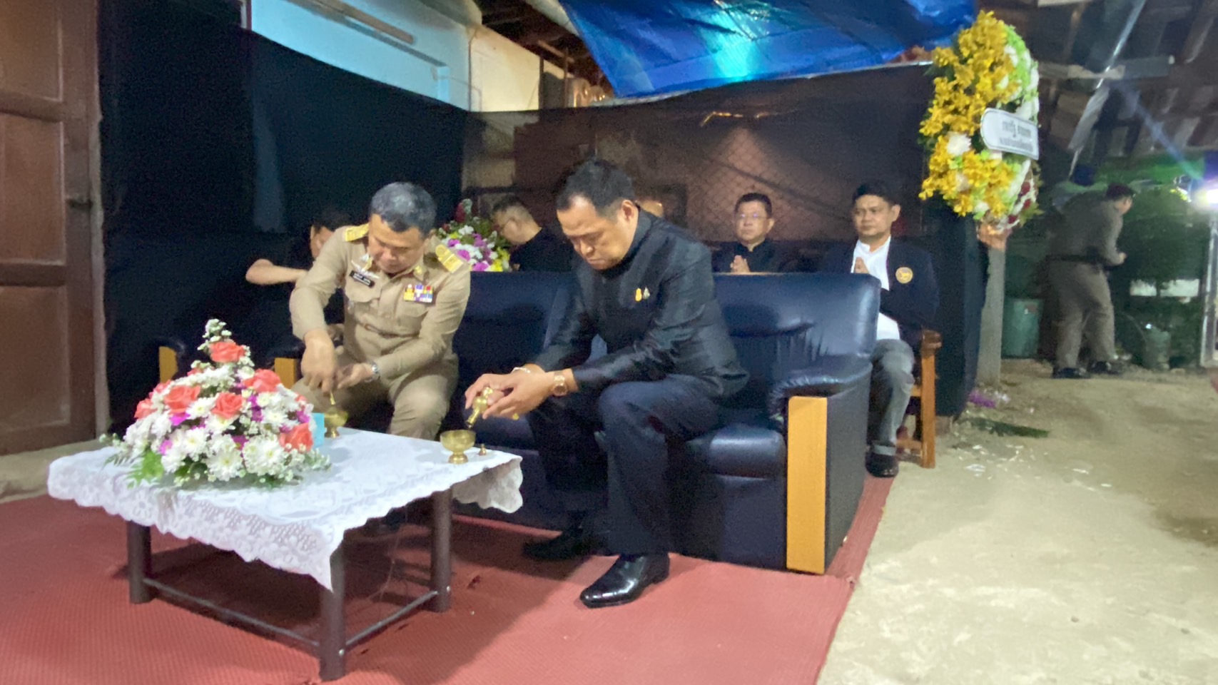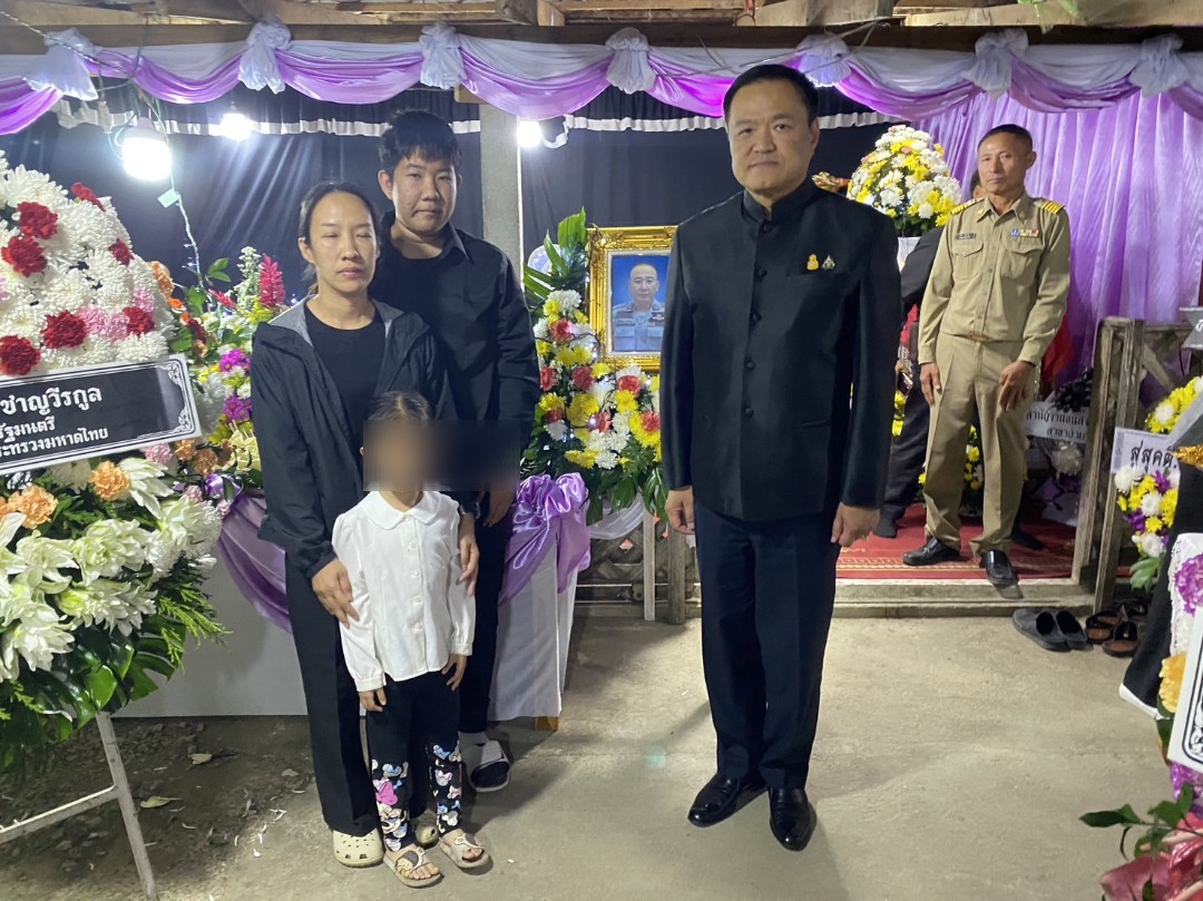 ผู้สื่อข่าวรายงานว่า นายอนุทิน ได้เข้าไปพูดคุยกับภรรยาผู้เสียชีวิต และบุตรอีก 2 คน โดยย้ำว่า จะส่งเสียเลี้ยงดู ให้ได้รับการศึกษาสูงที่สุด และได้มอบเงินช่วยเหลือจำนวนหนึ่ง นอกจากนั้น ได้บรรจุให้ภรรยาเข้าเป็น อส. และคุยกับบุตรคนโตของผู้เสียชีวิต ให้เป็นกำลังสำคัญของครอบครัว ขอให้เป็นคนดีของสังคมและประเทศชาติ พร้อมยืนยัน ทางการจะช่วยเหลือครอบครัว ให้สมกับความเสียสละของผู้เป็นบิดา จากนั้น ได้ไปกอดบุตรสาว พร้อมให้สัญญาว่าจะดูแลเรื่องการศึกษาอย่างเต็มที่