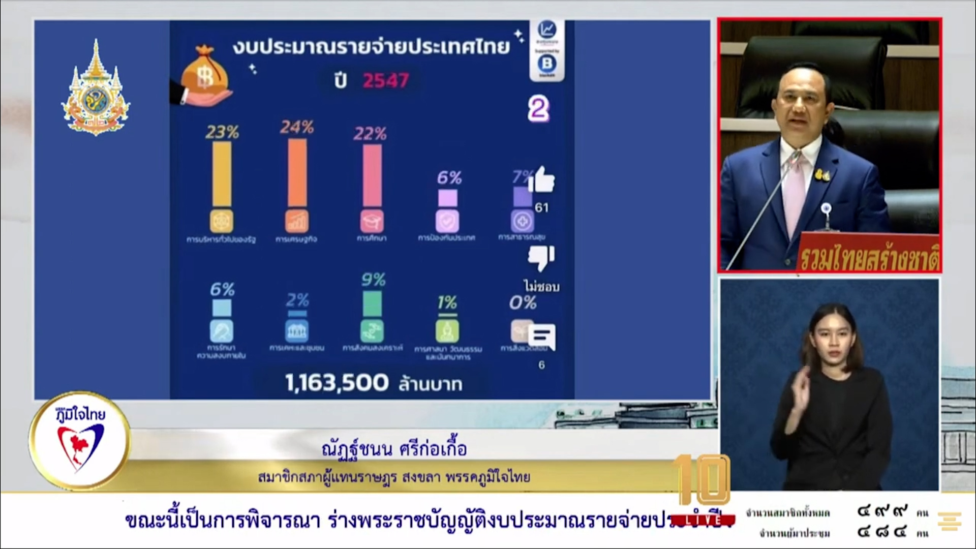 4 มกราคม 2567 เวลา 14:39"ณัฏฐ์ชนน" หนุนงบ ปี 67 เสนอรื้อระบบ ให้ท้องถิ่นจัดเก็บรายได้ เองจากคำอภิปรายงบประมาณรายจ่ายประจำปีงบประมาณ พ.ศ. 2567 ของนายณัฏฐ์ชนน ศรีก่อเกื้อ สมาชิกสภาผู้แทนราษฎรจังหวัดสงขลา เขตเลือกตั้งที่ 7 พรรคภูมิใจไทย นั้น ประเด็นสำคัญที่นายณัฏฐ์ชนน ได้กล่าวคือ . กระบวนการจัดทำงบประมาณมีความซับซ้อน และล่าช้า โดยร่างพระราชบัญญัติงบประมาณรายจ่ายประจำปีงบประมาณ พ.ศ. 2567 ที่มีจำนวน 3,480,000 ล้านบาท เป็นฉบับเดิมที่จัดทำโดยรัฐบาลพลเอกประยุทธ์ จันทร์โอชา ซึ่งสภาผู้แทนราษฎรได้พิจารณาเสร็จสิ้นแล้ว แต่มีการยุบสภา ก่อนที่คณะรัฐมนตรีชุดใหม่จะเข้ามาบริหารประเทศ จึงทำให้คณะรัฐมนตรีชุดใหม่ต้องนำร่างพระราชบัญญัติงบประมาณรายจ่ายประจำปีงบประมาณ พ.ศ. 2567 ฉบับเดิมมาเพิ่มเติมแก้ไข ซึ่งเป็นสาเหตุที่ทำให้กระบวนการจัดทำงบประมาณล่าช้า . งบประมาณส่วนใหญ่ถูกนำไปอุดหนุนให้กับองค์กรปกครองส่วนท้องถิ่น (อปท.) โดยกรมส่งเสริมปกครองส่วนท้องถิ่น สังกัดกระทรวงมหาดไทย ได้รับงบประมาณ 2,395,000 ล้านบาท แต่งบประมาณดังกล่าวส่วนใหญ่ถูกนำไปเป็นเงินเดือนค่าตอบแทนบุคลากรของกรมส่งเสริมปกครองส่วนท้องถิ่น เหลือเพียง 800 ล้านบาทเท่านั้นสำหรับการดำเนินการของกรมฯ . ทั้งนี้ นายณัฏฐ์ชนน เสนอแนะให้รัฐบาลควรแก้ไขกฎหมายให้ท้องถิ่นสามารถจัดเก็บภาษีประเภทต่างๆได้ เพื่อให้ท้องถิ่นมีรายได้เพิ่มขึ้น และให้มีอิสระในการบริหารงบประมาณของตนเองมากขึ้น พร้อมทั้งฝากถึงสำนักงบประมาณและกรมบัญชีกลางว่า ควรเร่งรัดการเบิกจ่ายงบประมาณ เพื่อให้โครงการต่างๆสามารถดำเนินการได้ทันเวลา และขอให้รับผิดชอบหากเกิดปัญหาการเบิกจ่ายงบประมาณล่าช้า แชร์บทความนี้: