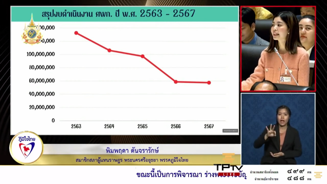 วันที่ 4 ธันวาคม 2567 นางสาวพิมพฤดา ตันจรารักษ์ สมาชิกสภาผู้แทนราษฎรจังหวัดพระนครศรีอยุธยา เขต 3 พรรคภูมิใจไทย อภิปรายงบประมาณรายจ่ายประจำปีงบประมาณ พ.ศ. 2567 โดยได้กล่าวถึงปัญหาครูไม่ครบชั้น การขาดแคลนบุคลากรครู รวมถึงขาดแคลนอุปกรณ์ครุภัณฑ์ ที่เอื้อต่อการเรียนรู้ของโรงเรียนขนาดเล็กในสังกัด สพฐ. ซึ่งทุกวันนี้มีอยู่มากกว่า 14,000 แห่ง และได้ยกตัวอย่างโครงการการศึกษาทางไกล ผ่านดาวเทียม ในพระราชดำริ ของในหลวงรัชกาลที่ 9 ซึ่งสามารถบรรเทาการขาดแคลนครู ครูไม่ครบชั้น และครูสอนไม่ตรงวิชาเอกได้ อย่างไรก็ตาม งบประมาณของโครงการนี้กลับลดลงทุกปี