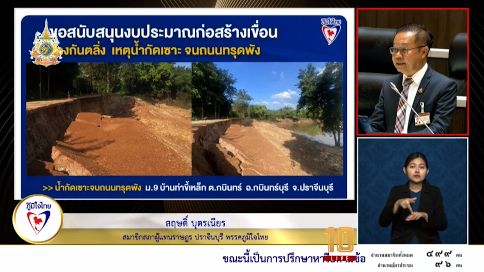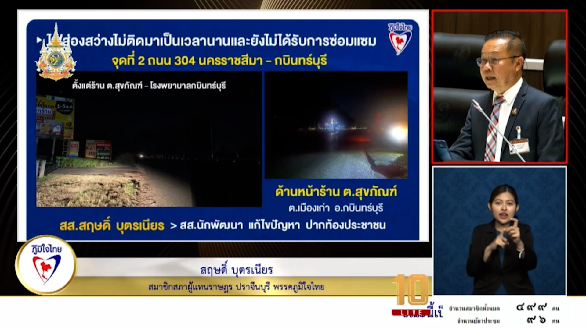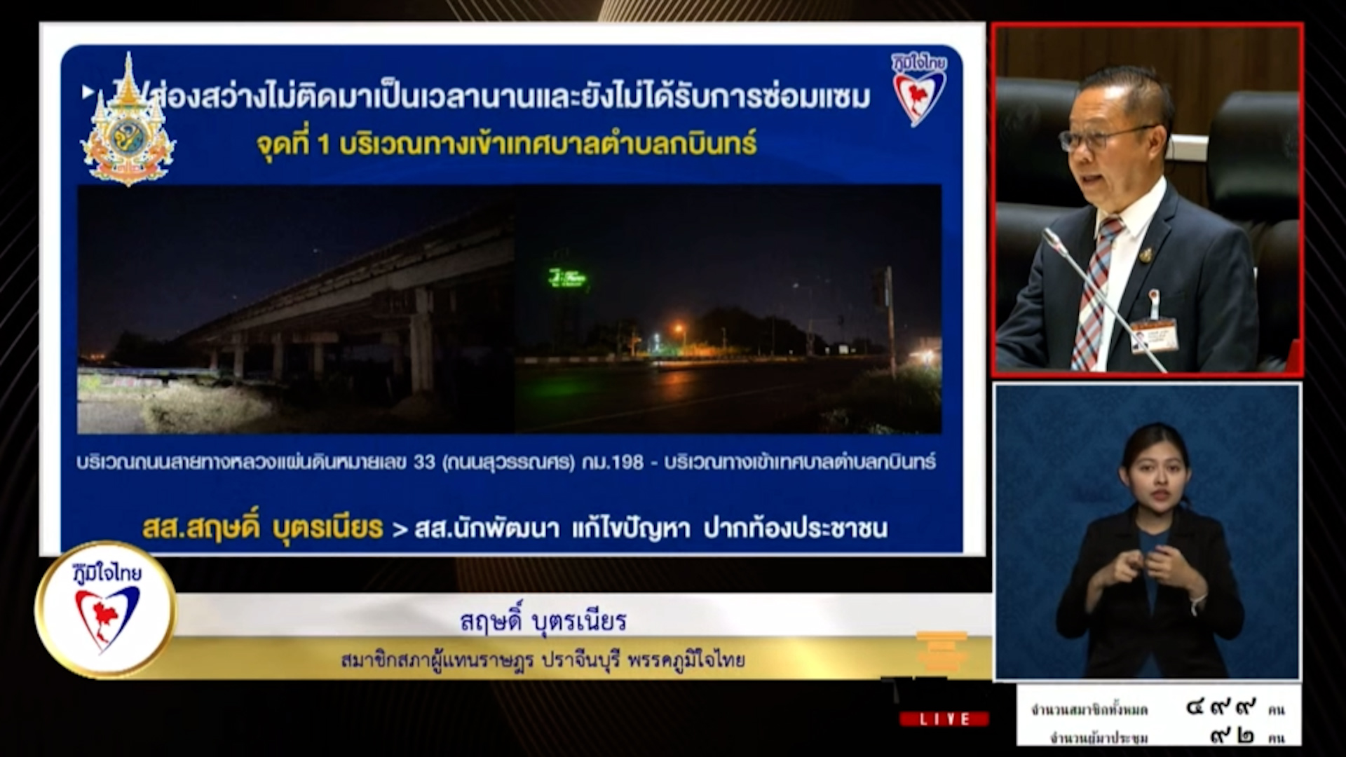 10 มกราคม 2567 เวลา 11:11สฤษดิ์ เรียกร้องแก้ปัญหาไฟส่องสว่างบนถนนทางหลวง 33 ทางหลวง 304 และแก้ปัญหาตลิ่งพัง ต. กบินทร์บุรี จ.ปราจีนบุรีนายสฤษดิ์ บุตรเนียร สมาชิกสภาผู้แทนราษฎร จังหวัดปราจีนบุรี เขต 3 พรรคภูมิใจไทย อภิปรายเรียกร้องให้ แก้ไขปัญหาไฟส่องสว่าง ไม่ติดเป็นระยะเวลานาน ในถนนทางหลวงเส้นที่ 33 ถนนสุวรรณศร กิโลเมตรที่ 198 ทางเข้าเทศบาล ต. กบินทร์บุรี ทำให้เกิดอุบัติเหตุบ่อยครั้งกับประชาชนสัญจนไปมา ทางนายกเทศมนตรี ทำหนังสือไปยังแขวงทางหลวง จ.ปราจีนบุรี เพื่อแก้ปัญหา จุดที่ 2 ไปส่องสว่างที่ไม่ติดตลอดเส้นทาง โดยเฉพาะเส้นทาง 304 จ.ฉะเชิงเทรา เป็นส้นทางไฮเวย์ เมนหลัก บริเวณหน้าร้านเซรามิกซ์เซ็นเตอร์ ไปจนถึง โรงพยาบาลกบินทร์บุรี มียานพาหนะ เป็นจำนวนมาก ทำให้เกิดอันตรายบ่อยครั้ง . นายสฤษดิ์ กล่าวว่า นอกจากนี้จะของบประมาณเขื่อนป้องกันตลิ่ง หมู่ 9 ต.บ้านท่าขี้เหล็ก ต.กบินทร์บุรี เกิดปัญหาตลิ่งพัง ถนนทรุด เป็นอันตรายต่อ ประชาชน โดยเฉพาะบ้าน 20 หลัง ทรุดพัง ช่วงน้ำหลากที่ผ่านมา โดยทางเทศบาล ทำได้เพียงนำดินไปถม พอน้ำหลากอีกก็เกิดการทรุดอีก จึงขอให้จัดสรรงบประมาณบรรเทาความเดือดร้อน แชร์บทความนี้: