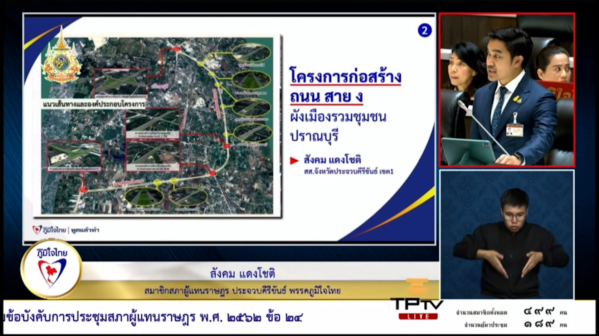 นายสังคม แดงโชติ สมาชิกสภาผู้แทนราษฎร จังหวัดประจวบคิรีขันธ์ พรรคภูมิใจไทย หารือที่ประชุมสภาผู้แทนราษฎร ในปัญหาการจราจรติดขัด ใน อ.ปราณบุรี สาเหตุจากเส้นทางคมนาคมที่มีอยู่ รองรับไม่เพียงพอ โดยเฉพาะทางหลวงหมายเลข 4 ผ่านตัวเมือง ปราณบุรี เพื่อแก้ไขปัญหาอย่างยั่งยืน ขอให้กรมทางหลวงชนบท เร่งพิจารณาโครงการก่อสร้างถนนสาย ง. ผังเมืองรวมชุมชนปราณบุรี หรือถนนเลี่ยงเมืองปราณบุรี โดยมีจุดเริ่มต้น ทางหลวงหมายเลข 37 ตัดผ่านแม่น้ำปราณบุรี และตัดผ่านทางหลวงชนบท หมายเลข ปข 1036 มุ่งหน้าไปยังทิศตะวันตก จนสิ้นสุดโครงการระยะทาง 14 กิโลเมตร บรรจบทางหลวงแผ่นดินหมายเลข 4 ซึ่งกรมทางหลวงชนบทออกแบบสำรวจ ไว้หลายปีแล้ว แต่ยังไม่มีการจัดสรรงบประมาณมาให้ ขอเรียกร้องให้กระทรวงคมนาคมพิจารณาแก้ปัญหาความเดือดร้อน ของประชาชนในพื้นที่ และประชาชนที่สัญจรผ่านไปยัง 14 จังหวัดภาคใต้ด้วย