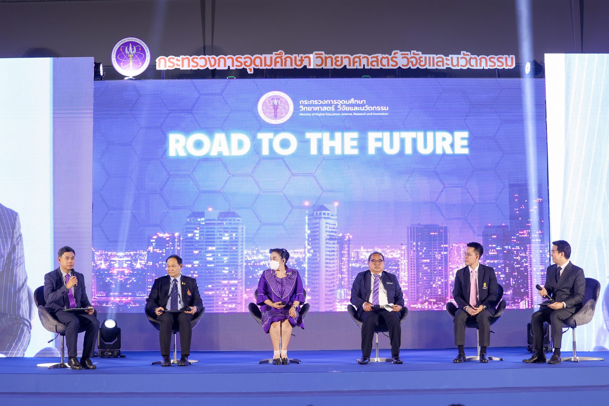 รมว.อว.กล่าวต่อว่า ในวันนี้ อว.จึงได้จัดงาน Future Thailand ขึ้น เพื่อระดมสมองความคิดเห็นจากอธิการบดี ผู้บริหารหน่วยงาน อว. และนักวิจัยทั่วประเทศ กว่า 800 คน กำหนดวิสัยทัศน์ แสดงความพร้อมและศักยภาพของ อว. ในการพัฒนาประเทศ งาน Future Thailand เป็นงานที่มองในอนาคตของประเทศไทยโดยการ รับฟังความเห็น สิ่งที่อยากเห็นในอนาคตทั้งจากอาจารย์มหาวิทยาลัย นักวิจัย นักศึกษา ภาคเอกชนและประชาชน รับข้อแนะนำในแนวทางที่จะไปสู่อนาคตจากประธานที่ประชุมอธิการบดีแห่งประเทศไทย (ทปอ.) ทั้ง 4 กลุ่มมหาวิทยาลัย และ รับทราบถึงความพร้อมของบุคลากรของกระทรวง อว. ที่จะไปสู่อนาคต