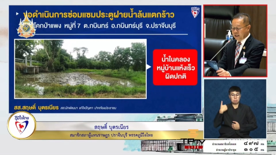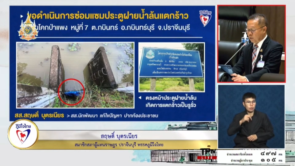 24 มกราคม 2567 เวลา 13:13"สฤษดิ์" สส.ภูมิใจไทย เร่งนำเดินการซ่อมแซม ประตูฝายน้ำล้น ที่ต.โคกกำแพง อ.กบินทร์บุรี เพื่อประโยชน์ประชาชนในการอุปโภค-บริโภควันที่ 24 มกราคม 2567 นายสฤษดิ์ บุตรเนียร สมาชิกสภาผู้แทนราษฎร จังหวัดปราจีนบุรี เขต 3 พรรคภูมิใจไทย ได้นำปัญหาด้านความปลอดภัย และด้านน้ำอุปโภคบริโภค เข้าหารือในการประชุมสภา การประชุมสภาผู้แทนราษฎร ครั้งที่ 10 นายสฤษดิ์ กล่าวว่า บริเวณถนนหมายเลข 304 กบินทร์บุรี-ฉะเชิงเทรา เป็นถนนสายหลัก การจราจรหนาแน่น มีนักศึกษาประมาณ 2,400 คน จากวิทยาลัยการอาชีพกบินทร์บุรี และประชาชนจำนวนมาก ข้ามถนนไป-มา ส่งผลให้เกิดอุบัติเหตุบ่อยครั้ง จึงขอให้แขวงทางหลวง และหน่วยงานต่างๆ สร้างสะพานลอย เพื่อความปลอดภัยของนักศึกษาและประชาชนโดยทั่วไป ด้านน้ำอุปโภคบริโภคน้ำในคลองโคกป่าแพง หมู่ที่ 7 ตำบลกบินทร์บุรแห้งเร็วกว่าปกติ หลังจากมีการสำรวจพื้นที่ พบว่าหน้าประตูฝายน้ำล้น เกิดรอยแตก ส่งผลให้ขาดแคลนน้ำที่ใช้อุปโภคบริโภค ดังนั้นฝากประสานไปยังกรมทรัพยากรน้ำ กระทรวงทรัพยากรธรรมชาติและสิ่งแวดล้อม ดำเนินการซ่อมแซมประตูฝายน้ำล้นดังกล่าว เพื่อให้ประชาชนมีน้ำใช้อุปโภคบริโภคและการเกษตรต่อไป แชร์บทความนี้: