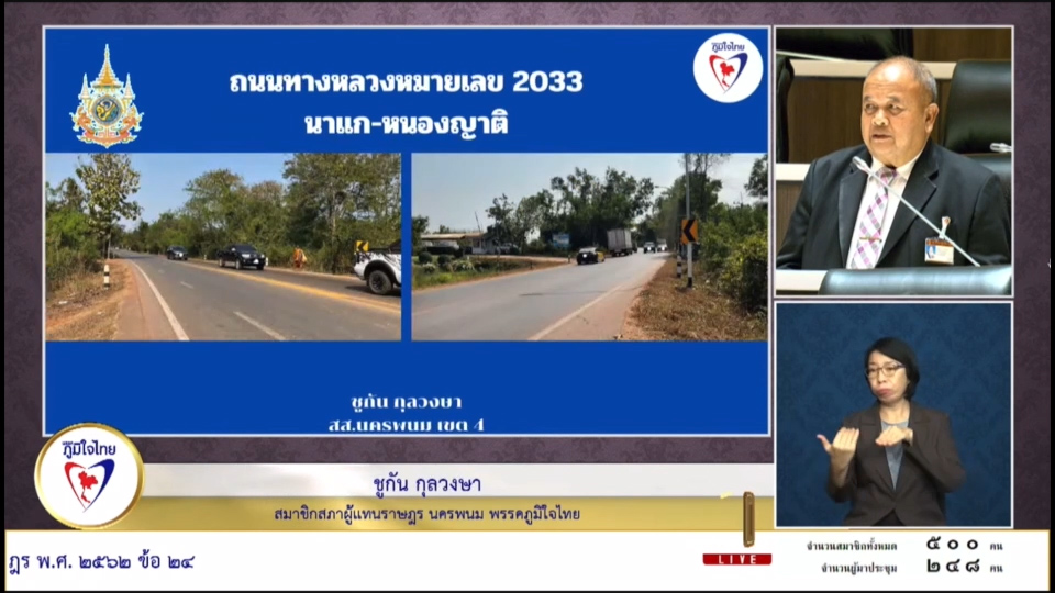 25 มกราคม 2567 เวลา 13:48"สส.ชูกัน" วอน กรมทางหลวง ขยายถนนสาย 2033 ให้เป็น 4 ช่องทางจราจร เพื่อให้ปชช.ที่สัญจรไปมา ผ่านไปสะพานมิตรภาพไทย-ลาว ได้สะดวก และปลอดภัยวันที่ 25 มกราคม 2567 นายชูกัน กุลวงษา สมาชิกสภาผู้แทนราษฎรจังหวัดนครพนม เขต 4 พรรคภูมิใจไทย ได้นำปัญหาปัญหาความเดือดร้อนของประชาชน ชาวอำเภอนาแก เข้าหารือในการประชุมสภาผู้แทนราษฎร ครั้งที่ 11 นายชูกัน กล่าวว่า สำหรับปัญไฟส่องสว่างทาง ถนนหมายเลข 223 สกลนคร-บ้านต้อง ช่วงเทศบาลตำบลนาแก ที่ไม่เพียงพอ ทำให้บริเวณพื้นที่สำคัญที่ประชาชนไปใช้บริการต่างๆ มืดสนิท เกิดอุบัติเหตุบ่อยครั้ง และประชาชนสัญจรไปมาลำบาก โดยเฉพาะในช่วงกลางคืน ขอให้กรมทางหลวงได้ติดตั้งไฟส่องสว่างทางให้พี่น้องชุมชนเขตเทศบาลนาแก เพื่อให้ได้ใช้ในการเดินสัญจรไปมา สำหรับปัญหาบริเวณ ถนนสายหนองญาติ-นาแก ที่ต้องการขยายถนนจาก 2 ช่องทางจราจร เป็น 4 ช่องทางจราจร เนื่องจากถนน สาย 2033 เป็นระยะทางไม่ต่ำกว่า 70 กิโลเมตร มีรถใช้ถนนเป็นจำนวนมาก โดยเฉพาะรถขนสินค้าที่จะผ่านสะพานมิตรภาพไทย-ลาว ขอให้กรมทางหลวง พิจารณาขยายจาก 2 ช่องทางจราจร ให้เป็น 4 ช่องทางจราจร ให้กับพี่น้องชาวอำเภอนาแก ชาวจังหวัดนครพนม อย่างเร่งด่วน แชร์บทความนี้: