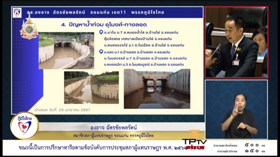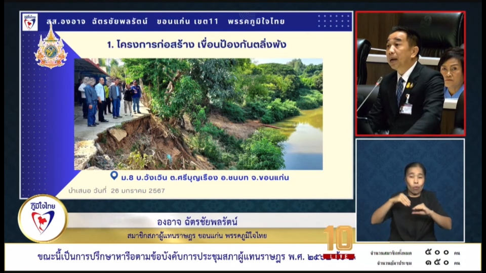 26 มกราคม 2567 เวลา 13:07"สส.องอาจ" วอน กรมเจ้าท่าเร่งรัดแก้ไขปัญหา และป้องกันตลิ่งพัง บ้านวังเวิน ต.ศรีบุญเรือง อ.ชนบท จ.ขอนแก่นวันที่ 26 มกราคม 2567 นายองอาจ ฉัตรชัยพลรัตน์ สมาชิกสภาผู้แทนราษฎรจังหวัดขอนแก่น เขต 11 พรรคภูมิใจไทย ได้นำปัญหาเดือดร้อนของประชาชนในเขตพื้นที่ จังหวัดขอนแก่น เข้าหารือในการประชุมสภาผู้แทนราษฎร ครั้งที่ 12 โดยนายองอาจ กล่าวถึงโครงการก่อสร้างเขื่อนป้องกันตลิ่งพังของบ้านวังเวิน หมู่ที่ 8 ตำบลศรีบุญเรือง อำเภอชนบท เนื่องจากตลิ่งแม่น้ำชีบริเวณดังกล่าวถูกกัดเซาะสะสมมานาน ทำให้ตลิ่งใกล้บ้านเรือนของประชาชนได้รับผลกระทบ ส่งผลให้ประชาชนได้รับความเดือดร้อนเป็นอย่างมาก แต่การก่อสร้างนั้นทราบมาว่า ไม่มีงบประมาณเพียงพอในการดำเนินการก่อสร้างเขื่อนป้องกันตลิ่ง ซึ่งยังเป็นปัญหาที่ส่งผลกระทบต่อความมั่นคงของบ้านเรือน ของประชาชนเป็นอย่างมาก ขอให้กรมเจ้าท่า เร่งรัดแก้ไขปัญหาโดยด่วน ต่อมาในโครงการก่อสร้างถนนคอนกรีตเสริมเหล็กบนถนนคันทำนบดิน ที่อ่างเก็บน้ำหนองกองแก้ว ตำบลศรีบุญเรือง อำเภอชนบท ปัจจุบันชำรุดทรุดโทรม มีอายุการใช้งานมานาน และไม่ได้รับการดูแลรักษาอย่างสม่ำเสมอ ส่งผลให้การเดินทางสัญจรเป็นไปด้วยความยากลำบาก ขอให้เร่งแก้ไขปัญาโดยด่วน ปัญหาต่อมาคือโครงการก่อสร้างถนน 4 ช่องทางจราจร ในพื้นที่อำเภอบ้านไผ่ ที่ได้รับการโอนคืนให้กับกรมทางหลวง กระทรวงคมนาคมแล้ว แต่โครงการยังไม่ได้มีการขยับขยาย ขอให้เร่งการทำงาน เพื่อเป็นหนึ่งในแนวทางพัฒนาเศรษฐกิจของอำเภอบ้านไผ่ เนื่องจากอำเภอบ้านไผ่กำลังจะเป็นศูนย์กลางการขนส่งของภาคอีสาน สส.องอาจ ยังกล่าวอีกว่า ปัญหาน้ำท่วมขังอุโมงค์ทางลอดในพื้นที่อำเภอบ้านไผ่ และอำเภอบ้านแฮด มีถึง 6 จุด ที่เกิดปัญหาน้ำท่วมซ้ำซาก เนื่องจากอุโมงค์ทางลอดไม่ได้รับการออกแบบมารองรับปริมาณน้ำฝนที่มากในช่วงฤดูฝน ส่งผลให้การสัญจรของประชาชนเป็นไปด้วยความยากลำบาก สุดท้าย เรื่องโครงการก่อสร้างสนามกีฬาของอําเภอบ้านไผ่ ที่กรมพลศึกษา กระทรวงการท่องเที่ยวและกีฬา ลงพื้นที่ทุกปี และได้รับการบรรจุในแผนทุกปี แต่ว่าถูกตัดออกทุกปีเช่นเดียวกัน อยากขอให้หน่วยงานดังกล่าวเร่งดำเนินการเพื่อประชาชน ที่รอคอยมานาน ให้เป็นจริง เพื่อเป็นประโยชน์ต่อไป แชร์บทความนี้: