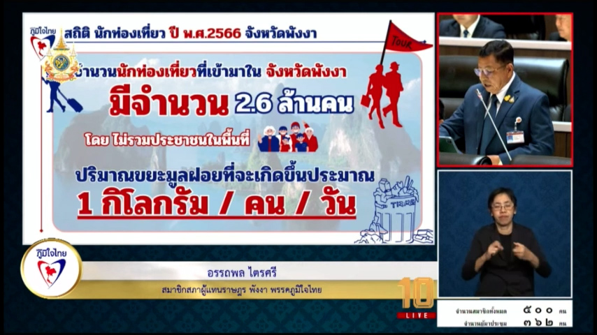 วันที่ 26 มกราคม 2567 นายอรรถพล ไตรศรี สมาชิกสภาผู้แทนราษฎรจังหวัดพังงา เขต 1 พรรคภูมิใจไทย ได้อภิปรายสนับสนุนญัตติขอให้ตั้งกรรมาธิการวิสามัญพิจารณาเกี่ยวกับแก้ไขปัญหาเรื่องบริหารจัดการขยะขององค์กรปกครองส่วนท้องถิ่น โดยกล่าวว่า จังหวัดพังงาเป็นแหล่งท่องเที่ยว และไม่มีเตาเผาขยะ ทุกวันนี้มีนักท่องเที่ยวทั้งชาวไทย และชาวต่างประเทศเข้ามาท่องเที่ยวมาก เพิ่มปริมาณขยะมากมาย โดยเฉพาะในปีที่ผ่านมานักท่องเที่ยวได้เข้ามาจังหวัดพังงา ประมาณ 2,600,000 คน และจากข้อมูลทั้งหมดมีขยะมูลฝอยเพิ่มขึ้นเฉลี่ยแล้ว 1 กิโลกรัมต่อ 1 คน ใน 1 วัน