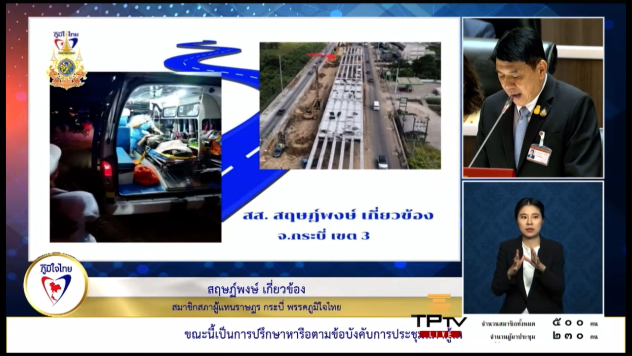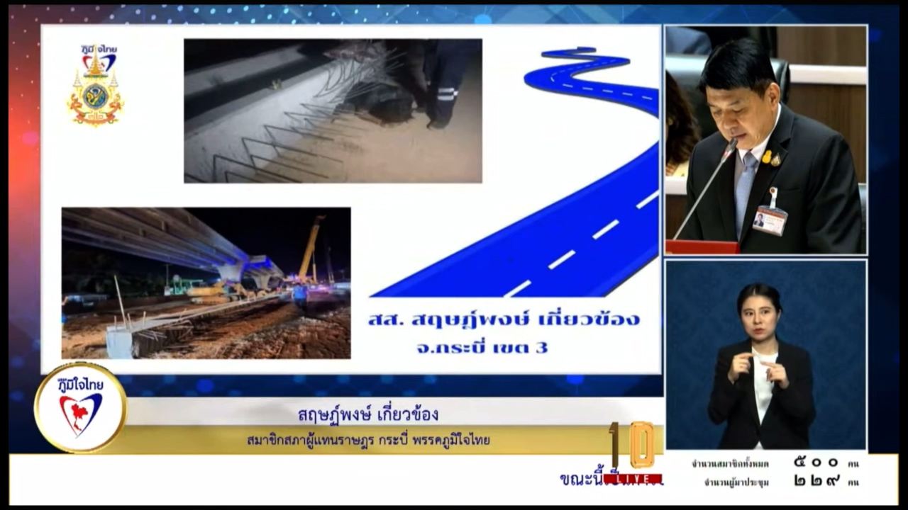 31 มกราคม 2567 เวลา 15:01"สฤษฏ์พงษ์" สส.ภูมิใจไทย ฝากหน่วยงานที่เกี่ยวข้อง เร่งการก่อสร้างสะพานข้ามเกาะลันตา เพื่อให้ประชาชนได้ใช้ประโยชน์วันที่ 31 มกราคม 2567 นายสฤษฏ์พงษ์ เกี่ยวข้อง สมาชิกสภาผู้แทนราษฎรจังหวัดกระบี่ เขต 3 พรรคภูมิใจไทย ได้นำปัญหาอุบัติเหตุสะพานหล่นทับคนงาน และสะพานข้ามเกาะลันตา เข้าหารือในการประชุมสภาผู้แทนราษฎร ครั้งที่ 13 นายสฤษฏ์พงษ์ กล่าวว่า เมื่อวันจันทร์ที่ 29 มกราคม เกิดเหตุการณ์สะพานลอยข้ามหน้าสนามบินนานาชาติกระบี่ ตกมาทับคนงาน ส่งผลให้ต้องตัดขาของคนงานทั้งสองข้าง ฝากถึงหน่วยงานในเรื่องของการควบคุมกำกับดูแล ในส่วนของกระทรวงคมนาคม รวมทั้งอธิบดีกรมทางหลวง ขออย่าให้เกิดเหตุการณ์เช่นนี้เกิดขึ้นอีก และขอให้หน่วยงานที่รับผิดชอบในเรื่องของการดูแลสวัสดิการ ซึ่งเป็นผู้รับเหมาชั้นพิเศษ ให้ผู้รับเหมาช่วงเข้ามารับงานต่อ ต่อมาเกี่ยวกับสนามบินจังหวัดกระบี่ ได้มีการถ่ายโอนมารอบหนึ่งแล้ว ในเรื่องของ ครม. เพื่อให้ AOT เข้ามารับผิดชอบ แต่ในขณะนี้ยังไม่มีการขับเคลื่อนเดินต่อ เนื่องจากว่าวันนี้สนามบินจังหวัดกระบี่ มีนักท่องเที่ยวใช้เป็นจำนวนมาก ขอให้รัฐมนตรีกระทรวงคมนาคม ช่วยดูแลเร่งรัดเรื่องนี้ด้วย สุดท้าย ในประเด็นสะพานข้ามเกาะลันตา ที่ประชาชนได้ร้องเรียนที่สภาแห่งนี้ เกี่ยวกับโครงสะพานดังกล่าวมูลค่า 1,800 ล้านบาท ประชาชนบนเกาะลันตาอยากจะเห็นความรวดเร็ว เหมือนกับ ครม. สัญจรที่ระนอง ที่ท่านอนุทิน ชาญวีรกูล ลงไปดูที่สะพานข้ามเกาะพยาม ซึ่งใช้เวลาเพียง 5-7 วัน ก็ได้ใช้สะพานแล้ว แต่ในส่วนของสะพานเกาะลันตา ตอนนี้ World Bank ได้อนุมัติงบประมาณ 1,854 ล้านบาทแล้ว ขอฝากกระทรวงการคลัง กระทรวงคมนาคม กระทรวงทรัพยากรธรรมชาติและสิ่งแวดล้อม ในเรื่องของปลาโลมา 14 ตัวด้วย ในเรื่องของการที่จะไปดูแลในเรื่องของผลกระทบสิ่งแวดล้อมด้วย สฤษฏ์พงษ์ กล่าว แชร์บทความนี้: