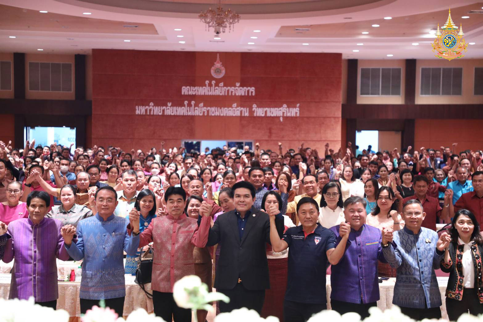 จากนั้น รมช.ศธ.พร้อมคณะได้เดินทางไปยังมหาวิทยาลัยเทคโนโลยีราชมงคลอีสานฯ เพื่อติดตามการขับเคลื่อนงานตามนโยบาย “เรียนดี มีความสุข” สู่การปฏิบัติในสถานศึกษาพื้นที่ จ.สุรินทร์