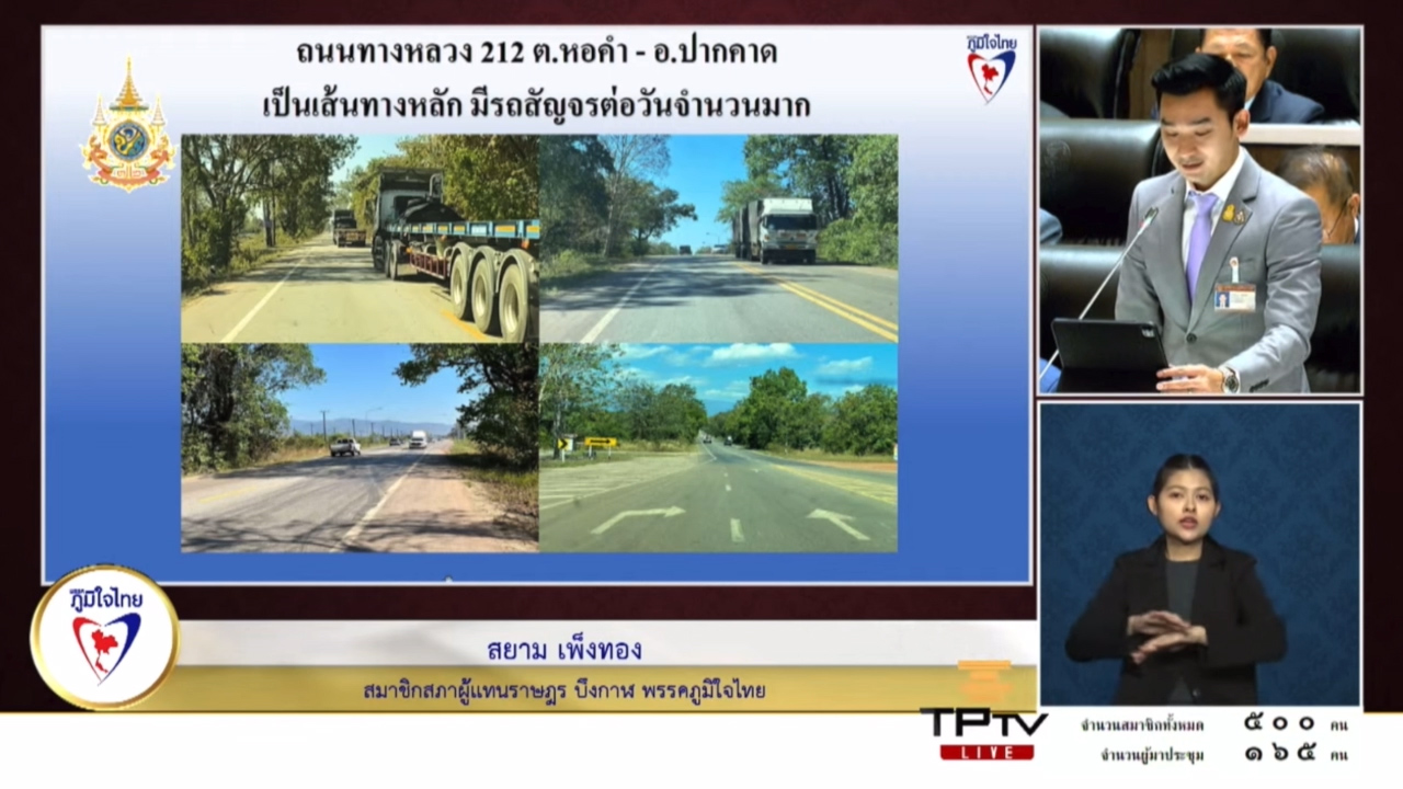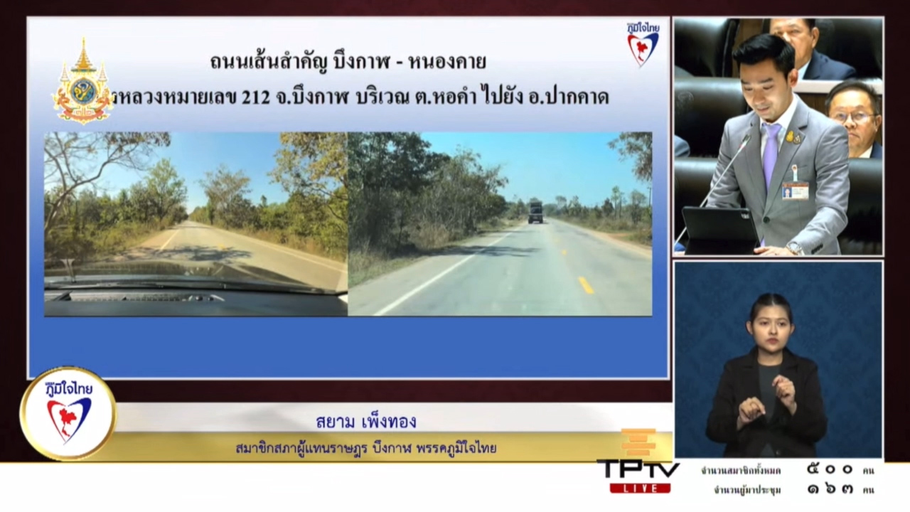 8 กุมภาพันธ์ 2567 เวลา 14:02"สส.สยาม" ขอกระทรวงคมนาคมเร่งพิจารณาข ยายช่องทางถนน ทล.212 ตำบลหอคำ จังหวัดบึงกาฬ เพื่อลดอุบัติเหตุ และความสะดวกปลอดภัยของพี่น้องประชาชนวันที่ 8 กุมภาพันธ์ 2567 นายสยาม เพ็งทอง สมาชิกสภาผู้แทนราษฎรจังหวัดบึงกาฬ เขต 1 พรรคภูมิใจไทย ได้หารือถึงปัญหาถนนทางหลวงหมายเลข 212 ในการประชุมสภาผู้แทนราษฎร ครั้งที่ 16 . โดยนายสยาม กล่าวว่า บริเวณถนนทางหลวงหมายเลข 212 ตำบลหอคำ อำเภอเมืองบึงกาฬ ไปยังอำเภอปากคาด ระยะทางประมาณ 14 กิโลเมตร เป็นถนนสายหลักสำคัญ ที่พี่น้องประชาชนใช้สัญจรจำนวนมาก เนื่องจากเป็นทางผ่านไปยังจังหวัดหนองคาย เพื่อเข้าสู่จังหวัดอุดรธานี ประชาชนในพื้นที่ใช้ถนนเส้นนี้เพื่อ การค้าระหว่างจังหวัด, การขนส่งผลผลิตทางการเกษตร, นักเรียนนักศึกษาเดินทางไปเรียนต่อ, นักท่องเที่ยวเดินทางเข้ามาท่องเที่ยว . ปัจจุบันสภาพถนนชำรุดเสียหายหลายจุด ทำให้เกิดอุบัติเหตุบ่อยครั้ง เกิดปัญหาการจราจรติดขัด และถนนเส้นนี้ยังเชื่อมโยงกับสะพานไทยลาวแห่งที่ 5 บึงกาฬ–บอลิคำไซ ที่กำลังก่อสร้างและจะแล้วเสร็จเร็วๆ จึงขอฝากไปยังกระทรวงคมนาคม ให้ช่วยพัฒนาพื้นที่ดังกล่าวโดยการขยายช่องทางเป็นถนน 4 เลน เพื่อลดการเกิดอุบัติเหตุ, เพิ่มความสะดวกปลอดภัยในการสัญจร เพื่อรองรับจำนวนรถที่เพิ่มมากขึ้นหลังจากสะพานไทยลาวแห่งที่ 5 สร้างเสร็จ นายสยาม กล่าว แชร์บทความนี้: