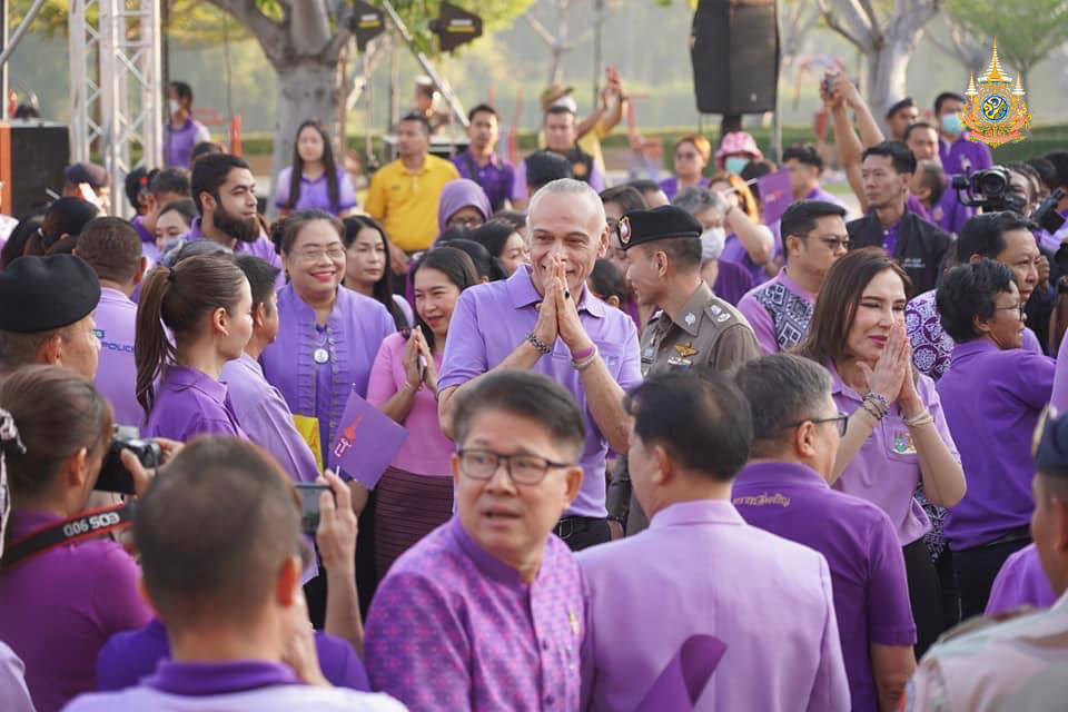 เมื่อเวลา 08.00 น. วันที่ 14 กุมภาพันธ์ 2567 ผู้สื่อข่าวรายงานจากจ.อุทัยธานี ที่บริเวณลานสุพรรณิการ์ หน้าศาลากลางจังหวัดอุทัยธานี นายชาดา ไทยเศรษฐ์ รัฐมนตรีช่วยว่าการกระทรวงมหาดไทย พร้อมด้วย นายธีรพัฒน์ คัชมาตย์ ผู้ว่าราชการจังหวัดอุทัยธานี นางสาวมนัญญา ไทยเศรษฐ์ ประธานคณะที่ปรึกษารมช.มหาดไทย นายเจเศรษฐ์ ไทยเศรษฐ์ ส.ส.อุทัยธานี เขต 1 ตลอดจนส่วนราชการ ผู้นำท้องถิ่น ท้องที่ ประชาชน และนักเรียนนับหมื่นคน พร้อมใจกันสวมใส่เสื้อสีม่วง และสีเหลือง มาร่วมร้องเพลงชาติไทย พร้อมแสดงจุดยืนในการปกป้องและถวายกำลังใจ สมเด็จพระกนิษฐาธิราชเจ้า กรมสมเด็จพระเทพรัตนราชสุดาฯ สยามบรมราชกุมารี ก่อนพากันเดินเท้าจากจุดดังกล่าวไปร่วมกันร้องเพลงสรรเสริญพระบารมีที่บริเวณหน้าบ้าน 905