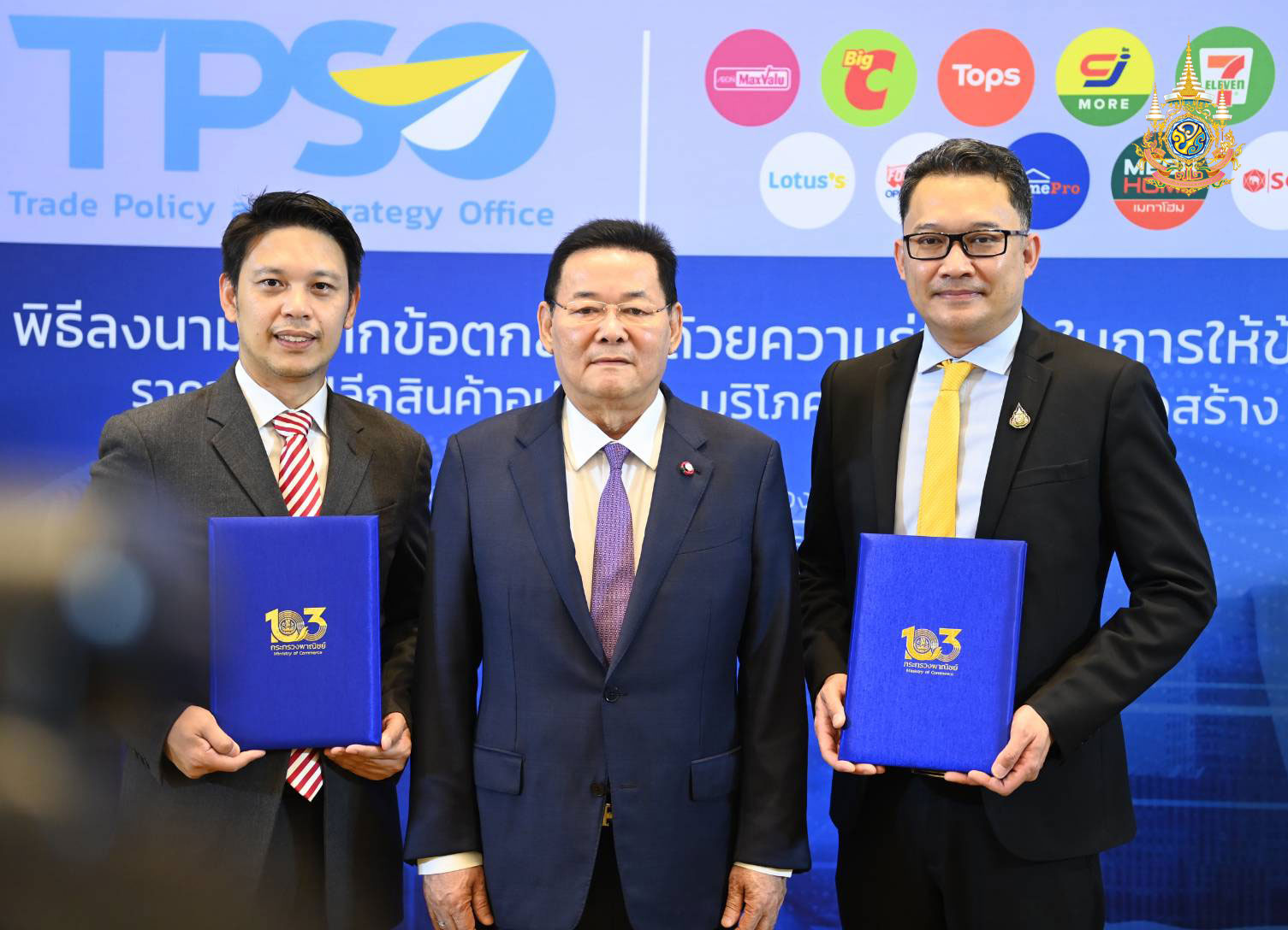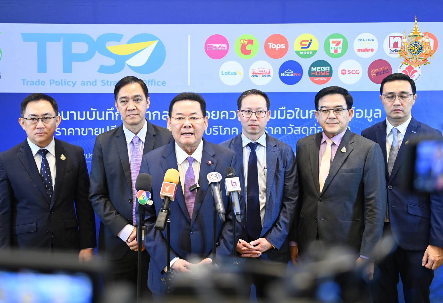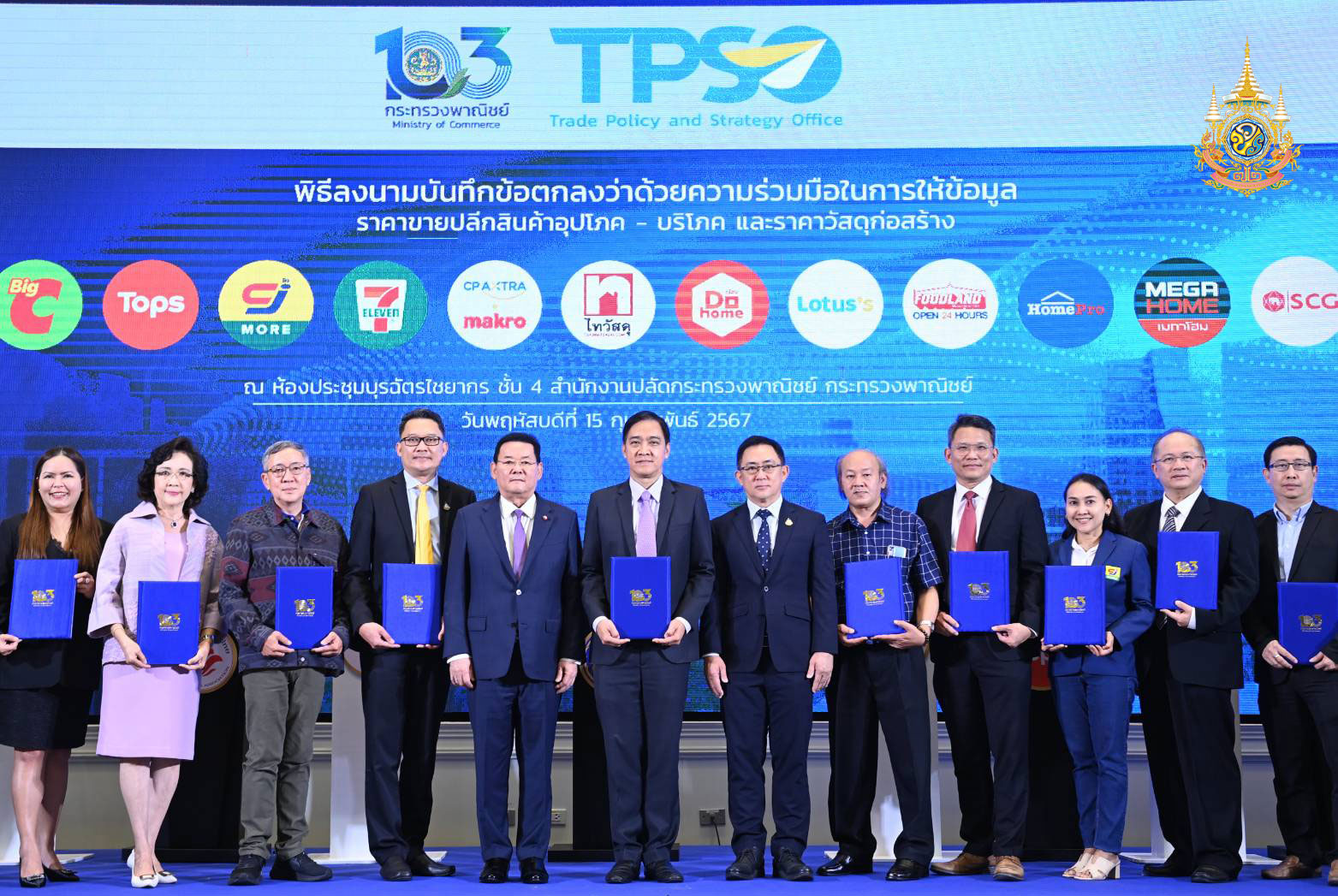 วันที่ 15 กุมภาพันธ์ 2567 ณ ห้องประชุมบุรฉัตรไชยากร ชั้น 4 สำนักงานปลัดกระทรวงพาณิชย์ กระทรวงพาณิชย์ นายนภินทร ศรีสรรพางค์ รัฐมนตรีช่วยว่าการกระทรวงพาณิชย์ เป็นประธานในพิธีลงนามบันทึกข้อตกลงความร่วมมือ (MOU) ว่าด้วยความร่วมมือในการให้ข้อมูลราคาขายปลีกสินค้าอุปโภค – บริโภค และราคาวัสดุก่อสร้างระหว่างกระทรวงพาณิชย์กับ 15 ผู้ประกอบรายสำคัญของประเทศ เพื่อช่วยพัฒนาการจัดทำดัชนีเศรษฐกิจการค้าที่กระทรวงพาณิชย์ได้ดำเนินมามากกว่า 80 ปี ถือเป็นจุดเริ่มต้นของการยกระดับการทำงานอย่างสร้างสรรค์ และสอดคล้องกับนโยบายที่ได้ให้ไว้ คือ เร่งทำงานเชิงรุก ให้มีความสำเร็จอย่างเป็นรูปธรรม ลดข้อจำกัดในการทำงาน และการบูรณาการทำงานร่วมกันระหว่างกระทรวงพาณิชย์กับภาคเอกชน สำหรับวัตถุประสงค์หลักในการร่วมมือฯ เพื่อพัฒนาการจัดทำดัชนีเศรษฐกิจการค้าให้สอดคล้องกับสถานการณ์ทางเศรษฐกิจในปัจจุบัน ซึ่งถือว่าเป็นการเปลี่ยนแปลงครั้งสำคัญและเป็นวิธีการที่มีประสิทธิภาพสูงขึ้นจากเดิม ที่ต้องอาศัยเจ้าหน้าที่เก็บข้อมูลจำนวนมากตามห้างร้านต่าง ๆ เปลี่ยนเป็นการเชื่อมโยงข้อมูลโดยตรงจากผู้ประกอบการ โดยใช้ความก้าวหน้าของเทคโนโลยีและความอนุเคราะห์จากผู้ประกอบการ ทำให้กระทรวงพาณิชย์ได้รับข้อมูลที่ถูกต้องอย่างรวดเร็ว และลดกระบวนการทำงาน แต่ยังคงไว้ ซึ่งมาตรฐานในการจัดทำดัชนีเศรษฐกิจการค้าระดับสากล