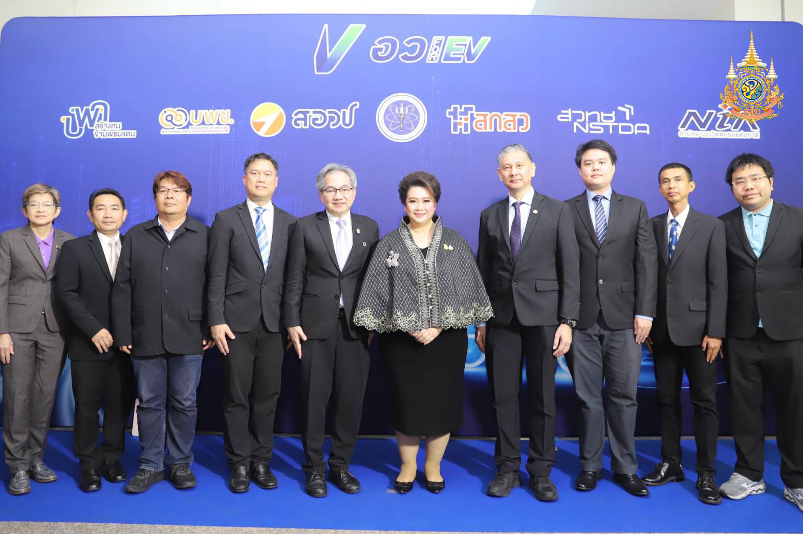 เมื่อวันที่ 16 ก.พ. 2567 นางสาวศุภมาส อิศรภักดี รัฐมนตรีว่าการกระทรวงการอุดมศึกษา วิทยาศาสตร์ วิจัยและนวัตกรรม (อว.) เป็นประธานในงานแถลงข่าวเปิดตัวนโยบาย อว. For EV โดยมี พญ.เพชรดาว โต๊ะมีนา ที่ปรึกษา รมว.อว., นางสาวสุชาดา แทนทรัพย์ เลขานุการ รมว.อว., ศ.ดร.นพ.สิริฤกษ์ ทรงศิวิไล ประธานคณะกรรมการส่งเสริมวิทยาศาสตร์ วิจัยและนวัตกรรม, รศ.ดร.พาสิทธิ์ หล่อธีรพงศ์ เลขาธิการสำนักงานปรมาณูเพื่อสันติ (ปส.), ศ.ดร.ชูกิจ ลิมปิจำนงค์ ผอ.สำนักงานพัฒนาวิทยาศาสตร์และเทคโนโลยีแห่งชาติ (สวทช.), ผศ.ดร.วีรชัย อาจหาญ รอง ผอ.สวทช., ศ.ดร.นพ.พงษ์รักษ์ ศรีบัณฑิตมงคล อธิการบดีมหาวิทยาลัยเชียงใหม่ และประธานที่ประชุมอธิการบดีแห่งประเทศไทย, รศ.ดร.พงศ์พันธ์ แก้วตาทิพย์ รอง ผอ.สำนักงานคณะกรรมการส่งเสริมวิทยาศาสตร์ วิจัยและนวัตกรรม (สกสว.), ดร.สุรชัย สถิตคุณารัตน์ รอง ผอ.สำนักงานสภานโยบายการอุดมศึกษา วิทยาศาสตร์ วิจัยและนวัตกรรมแห่งชาติ (สอวช.), รศ.ดร.ธงชัย สุวรรณสิชณน์ ผู้อำนวยการหน่วยบริหารและจัดการทุนด้านการเพิ่มความสามารถในการแข่งขันของประเทศ (บพข.), ศ.ดร.สมปอง คล้ายหนองสรวง ผู้อำนวยการหน่วยบริหารและจัดการทุนด้านการพัฒนากำลังคน และทุนด้านการพัฒนาสถาบันอุดมศึกษา การวิจัยและการสร้างนวัตกรรม (บพค.), ดร.กิตติ สัจจาวัฒนา ผู้อำนวยการหน่วยบริหารและจัดการทุนด้านการพัฒนาระดับพื้นที่ (บพท.) และผู้บริหารหน่วยงานในสังกัดกระทรวง อว. หน่วยงานภาคีเครือข่าย เข้าร่วมงาน ณ ห้องประชุมออดิทอเรียมชั้น 3 อาคารศูนย์ประชุมอุทยานวิทยาศาสตร์ประเทศไทย จังหวัดปทุมธานี