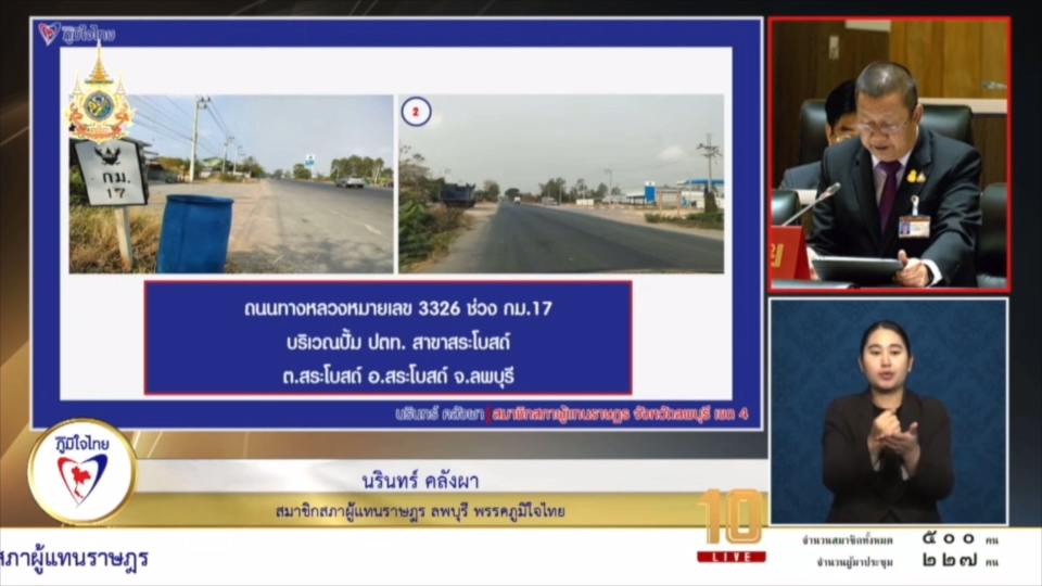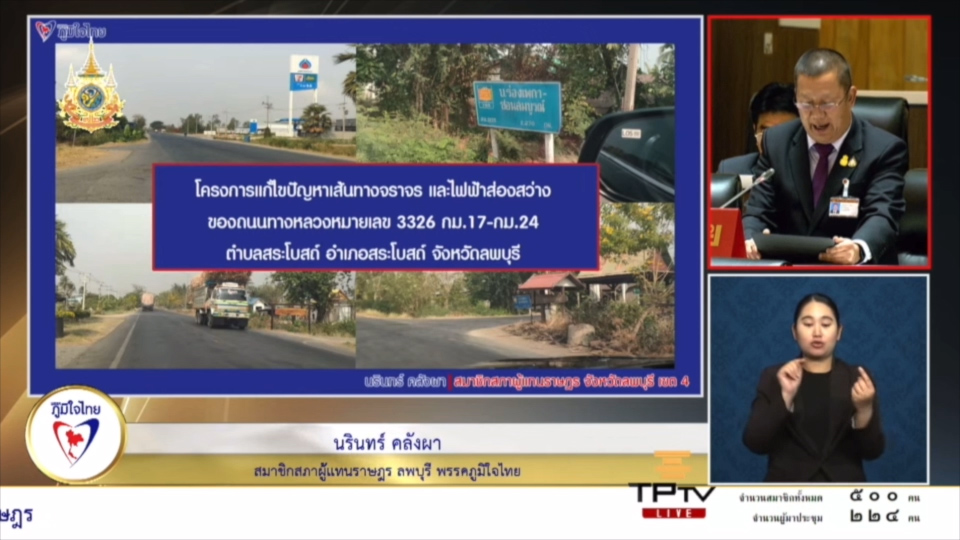 วันที่ 21 กุมภาพันธ์ 2567 นายนรินทร์ คลังผา สมาชิกสภาผู้แทนราษฎรจังหวัดลพบุรี เขต 4 พรรคภูมิใจไทย ได้นำปัญหาความเดือดร้อน เรื่องทางหลวงหมายเลข 3326 และติดตามถนนทางหลวง 2219 ในการประชุมสภาผู้แทนราษฎร ครั้งที่ 19