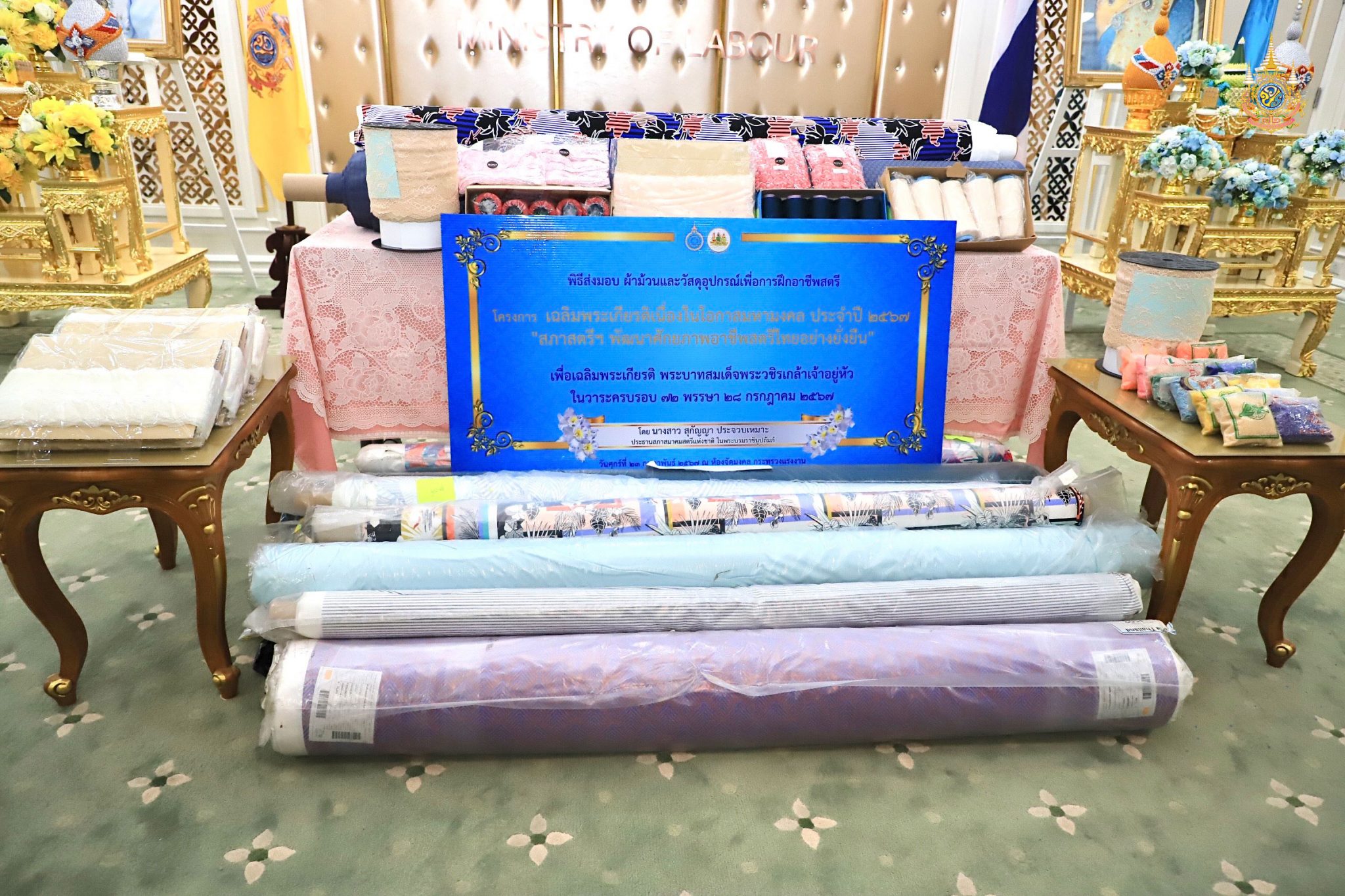 นายพิพัฒน์ รัชกิจประการ รัฐมนตรีว่าการกระทรวงแรงงาน กล่าวว่า ในนามของกระทรวงแรงงาน รู้สึกยินดีและเป็นเกียรติอย่างยิ่งที่สมาคมสตรีแห่งชาติ ในพระบรมราชินูปถัมภ์ ได้เล็งเห็นถึงความสำคัญในการพัฒนาแรงงานกลุ่มแรงงานสตรีให้มีความรู้ สามารถนำไปประกอบอาชีพ เลี้ยงดูตนเองและครอบครัวได้ ทั้งนี้ กระทรวงแรงงาน จะส่งมอบผ้าม้วน และวัสดุอุปกรณ์เหล่านี้ให้แก่กรมพัฒนาฝีมือแรงงาน ซึ่งมีภารกิจในการพัฒนาฝีมือแรงงานเพื่อเตรียมความพร้อมก่อนเข้าสู่ตลาดแรงงาน และพัฒนาแรงงานที่อยู่ในตลาดแรงงาน ทั้งในและนอกระบบ กลุ่มผู้ว่างงาน กลุ่มแรงงานสตรี กลุ่มแรงงานผู้สูงอายุ และกลุ่มเปราะบางต่างๆ ให้มีความรู้ มีศักยภาพ มีทักษะฝีมือนำไปใช้ในการประกอบอาชีพ สร้างงาน สร้างรายได้ ที่มั่นคงและยั่งยืน ผ่านการฝึกอบรมให้แก่กลุ่มสตรี ตามโครงการพัฒนาฝีมือแรงงานสตรี เพื่อยกระดับศักยภาพวัยแรงงานให้กับองค์กรสมาชิกสภาสตรีแห่งชาติฯ และองค์กรภาคีเครือข่าย 4 จังหวัดนำร่อง ได้แก่ จังหวัดแม่ฮ่องสอน, จังหวัดอุดรธานี, จังหวัดนนทบุรี และจังหวัดนราธิวาส ให้เกิดประโยชน์สูงสุดต่อไป
