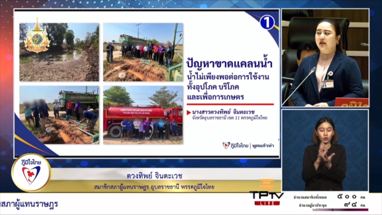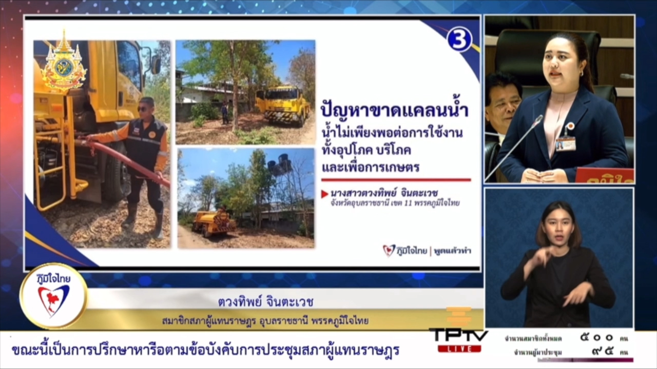 28 กุมภาพันธ์ 2567 เวลา 11:41ขาดแคลนเป็นวงกว้าง ! “ตวงทิพย์” เรียกร้อง กรมชลประทาน-กรมทรัพยากรน้ำ แก้ปัญหา น้ำกิน น้ำใช้ น้ำเพื่อการเกษตร ในพื้นที่ จ.อุบลฯนางสาวตวงทิพย์ จินตะเวช สมาชิกสภาผู้แทนราษฎร จ.อุบลราชธานี พรรคภูมิใจไทย หารือประธานสภาผู้แทนราษฎร ในปัญหาความเดือดร้อนของประชาชน อ.เดชอุดม เกี่ยวกับเรื่องน้ำ อำเภอเดชอุดม มีพื้นที่ทำการเกษตรอยู่ประมาณ 605,811 ไร่ แบ่งออกเป็นการปลูกข้าวข้าวโพดปาล์มน้ำมัน และพืชผลชนิดอื่นๆ ซึ่งปัญหาหลักที่พบในปัจจุบันคือ น้ำไม่เพียงพอ ต่อการใช้งาน ทั้งเพื่อการเกษตร และเพื่อการอุปโภค บริโภค โดยเฉพาะอย่างยิ่งต.นากระแซง ต.สมสะอาด ต.บัวงาม ต.ตบหู เป็นต้น . “ได้รับเรื่องร้องเรียนมาจากนายกองค์การบริหารส่วนตำบลนากระแซง แจ้งมาว่า ในเขตพื้นที่มีน้ำขาดแคลนเป็นวงกว้าง ซึ่งขณะนี้ประชาชนที่ตำบลนากระแซง เริ่มมีน้ำไม่เพียงพอต่อการใช้งานแล้ว จึงได้ประสานไปยังนายกองค์การบริหารส่วนตำบลเมืองเดช และหมวดทางหลวงเดชอุดม กรมทางหลวง ให้ได้มีการนำรถน้ำออกมาบริการ เพื่อเป็นการแก้ไขปัญหาเบื้องต้นต้องขอชื่นชมองค์กรปกครองส่วนท้องถิ่น ทุกแห่ง ของอำเภอเดชอุดม โดยเฉพาะอย่างยิ่งจากการนำของท่านนายอำเภอ ที่ได้มีการทำ MOU ร่วมกันประสานแต่ละหน่วยงาน ให้ดูแลประชาชนร่วมกัน และนี่เป็นเพียงตัวอย่าง จึงขอฝากกรมชลประทาน หรือกรมทรัพยากรน้ำ ให้มีการออกสำรวจแหล่งน้ำที่ ตื้นเขิน หรือระบบน้ำใต้ดิน ให้ประชาชนได้มีน้ำกิน น้ำใช้ เพียงพอตลอดทั้งปี” นางสาวตวงทิพย์ กล่าว แชร์บทความนี้: