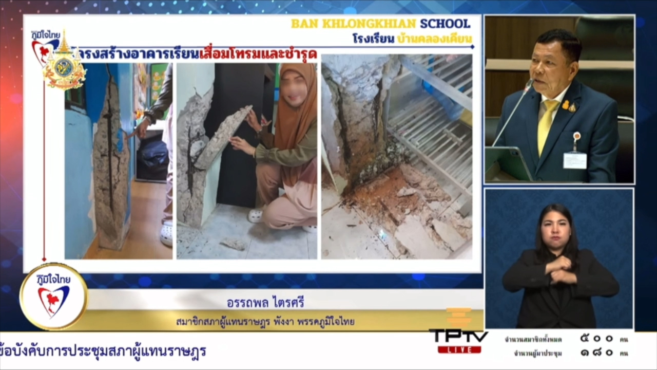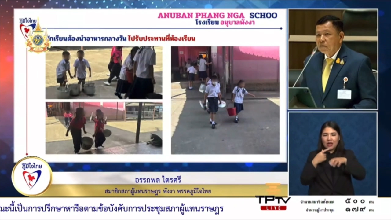 28 กุมภาพันธ์ 2567 เวลา 13:49โรงอาหารโรงเรียนไม่มี ! “อรรถพล” ทวงถามงบประมาณ เผย “เสมา2” เห็นกับตา เด็กนักเรียน ต้องนำ หม้อข้าว หม้อแกง ขึ้นไปทานอาหารที่ห้องเรียนนายอรรถพล ไตรศรี สภาผู้แทนราษฎร จ.พังงา พรรคภูมิใจไทย หารือประธานสภาผู้แทนราษฎร เรื่องการก่อสร้างโรงอาหารโรงเรียนอนุบาลจังหวัดพังงา เนื่องจากโรงเรียนอนุบาลจังหวัดพังงา มีการเรียนการสอนมาเป็นเวลา 10 ปี แต่โรงอาหารของโรงเรียนไม่มี มีนักเรียนที่มีเขตบริการ จังหวัดพังงาทั้งจังหวัด และจังหวัดใกล้เคียง ปัจจุบันมีนักเรียนอยู่ประมาณ 1,560 กว่าคน คณะครู 104 คน แต่ไม่มีโรงอาหาร เนื่องจากยังขาดโรงอาหาร . “ในวันที่ 22 มกราคม 2567 ที่ผ่านมา นายสุรศักดิ์ พันธ์เจริญวรกุล รัฐมนตรีช่วยว่าการกระทรวงศึกษาธิการ ไปติดตามงาน ได้เห็นเหตุการณ์ว่าเด็กนักเรียน ต้องนำหม้อข้าว หม้อแกง ขึ้นไปทานอาหารที่ห้อง ซึ่งเป็นสภาพที่เห็นแล้วหดหู่ อยากให้หน่วยงานที่เกี่ยวข้องโดยเฉพาะกระทรวงศึกษาธิการ ดำเนินการก่อสร้างอาคารโรงอาหารดังกล่าวด้วย” . นายอรรถพล กล่าวว่า นอกจากนี้ อาคารเรียนโรงเรียนบ้านบางคลี ต.คลองเคียน อำเภอตะกั่วทุ่ง จังหวัดพังงา อาคารเรียน สร้างมาเมื่อ พ.ศ. 2517 เป็นเวลา 50 ปี แล้ว ซึ่งมีนักเรียนตั้งแต่อนุบาล ถึง ป.6 ทำการเรียนการสอน ปัจจุบันนี้ อาคารดังกล่าว สำนักงานเขตพื้นที่ศึกษา และสำนักงานคณะกรรมการศึกษา มีนโยบายให้ทุบทิ้ง ตั้งแต่ปี 2562 แต่ไม่มีงบประมาณในการดำเนินการ ได้รับการร้องเรียนจากผู้บริหารโรงเรียน และผู้ปกครอง บอกว่าอาคาร ดังกล่าวอันตรายมาก อยากให้หน่วยงานที่เกี่ยวข้อง ดำเนินการรื้อถอน และสร้างอาคารใหม่ ให้กับนักเรียนด้วย แชร์บทความนี้: