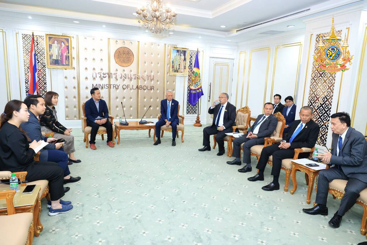 วันที่ 6 มีนาคม 2567 นายพิพัฒน์ รัชกิจประการ รัฐมนตรีว่าการกระทรวงแรงงาน ให้การต้อนรับ นายปิยะพงศ์ จิตต์จำนงค์ ผู้ช่วยกรรมการผู้จัดการใหญ่อาวุโส OSR & Western Cuisine บริษัท เซ็นทรัล เรสตอรองส์ กรุ๊ป จำกัด และคณะ ในโอกาสเข้าพบเพื่อหารือเกี่ยวกับประเด็นการจ้างงานคนพิการ ผู้สูงอายุ จ้างงานรายชั่วโมง และทิศทางแนวโน้มการปรับค่าจ้างขั้นต่ำ โดยมี นายสิรภพ ดวงสอดศรี ผู้ช่วยรัฐมนตรีประจำกระทรวงแรงงาน นายอารี ไกรนรา เลขานุการรัฐมนตรีว่าการกระทรวงแรงงาน นายภุชงค์ วรศรี ประจำสำนักเลขาธิการนายกรัฐมนตรี ปฏิบัติหน้าที่ประจำกระทรวงแรงงาน นายไพโรจน์ โชติกเสถียร ปลัดกระทรวงแรงงาน พร้อมด้วย ผู้บริหารระดับสูงกระทรวงแรงงาน เข้าร่วม ณ ห้องจัตุมงคล ชั้น 6 อาคารกระทรวงแรงงาน