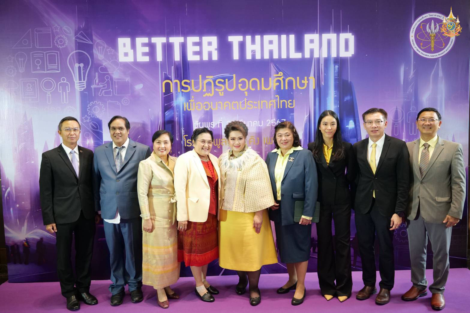 เมื่อวันที่ 27 มี.ค. 2567 กระทรวงการอุดมศึกษา วิทยาศาสตร์ วิจัยและนวัตกรรม(อว.) จัดงาน "BETTER THAILAND การปฏิรูปอุดมศึกษา เพื่ออนาคตประเทศไทย" โดยมี นางสาวศุภมาส อิศรภักดี รัฐมนตรีว่าการกระทรวง อว. เป็นประธานเปิดงาน และบรรยายพิเศษหัวข้อ "การปฏฺิรูปอุดมศึกษา เพื่ออนาคตประเทศไทย" พร้อมมีนายเพิ่มสุข สัจจาภิวัฒน์ ปลัดกระทรวง อว., น.ส.สุชาดา แทนทรัพย์ เลขานุการ รมว.กระทรวง อว. , ศ.ดร.ศุภชัย ปทุมนากุล รองปลัดกระทรวง อว., นายพันธุ์เพิ่มศักดิ์ อารุณี ผอ.กองขับเคลื่อนและพัฒนาการอุดมศึกษา วิทยาศาสตร์ วิจัยและนวัตกรรม สำนักงานปลัดกระทรวง อว. และผู้บริหารเข้าร่วม โดย น.ส.ศุภมาส กล่าวว่า ในปัจจุบันเราทุกคนกำลังเผชิญกับความท้าทายหลายด้าน เช่น ประเทศเข้าสู่สังคมสูงวัย คนในวัยทำงานลดลง คนในวัยเรียนก็ลดลง รวมถึงเทคโนโลยีเปลี่ยนแปลงอย่างรวดเร็ว หากเราปรับตัวไม่ทันจะทำให้เสียโอกาสในการแข่งขัน ความท้าทายเหล่านี้ส่งผลกระทบต่อการศึกษาของประเทศเป็นอย่างมาก ไม่ว่าจะเป็นเด็กจบมาแล้วมีทักษะไม่ตรงตามความต้องการของตลาด มีทักษะที่ไม่สอดคล้องกับการเปลี่ยนแปลง คนเข้าเรียนมหาวิทยาลัยลดลง รวมถึงความเหลื่อมล้ำในการเข้าถึงระบบการศึกษาของคนในประเทศ ถึงแม้ว่าที่ผ่านมา มหาวิทยาลัยมีการปรับตัวและพัฒนาดีขึ้นมาอย่างต่อเนื่อง แต่ท่ามกลางความท้าทายที่เกิดขึ้นและเปลี่ยนแปลงอย่างรวดเร็วนี้ จึงจำเป็นอย่างยิ่งที่จะต้องการปรับเปลี่ยนให้มากขึ้นและรวดเร็วขึ้น นี่จึงเป็นที่มาของการจัดทำการปฏิรูปอุดมศึกษาในครั้งนี้ ซึ่งได้แบ่งนโยบายการปฏิรูปออกเป็น 4 เป้าหมายสำคัญ หรือเรียกง่ายๆ ว่า 2 ลด 2 เพิ่ม คือ ลดภาระ ลดความเหลื่อมล้ำ เพิ่มทักษะ และเพิ่มโอกาส