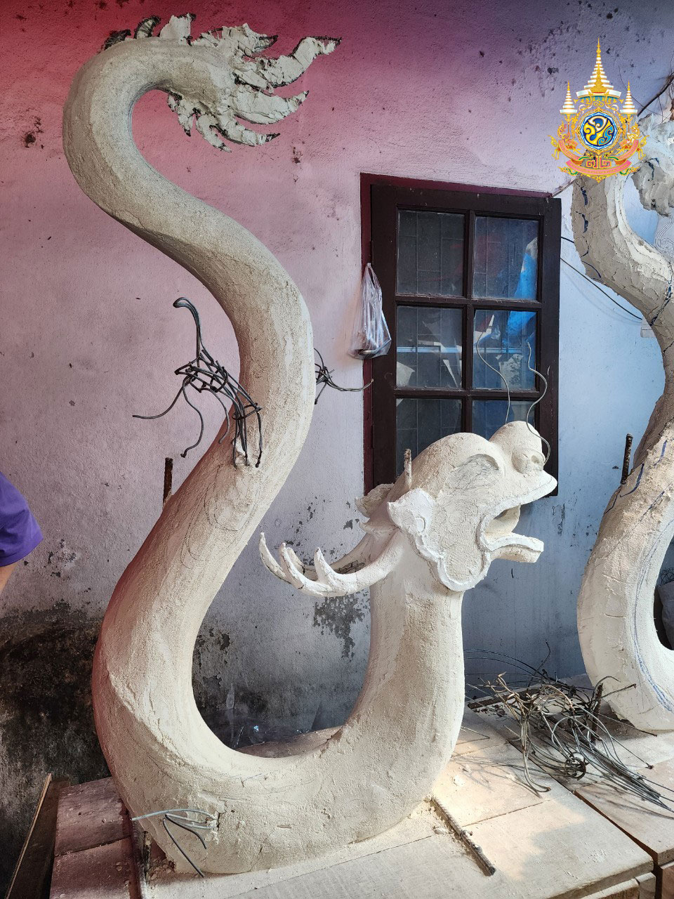 นายแพทย์รุ่งเรือง กิจผาติ อธิบดีกรมวิทยาศาสตร์บริการ (วศ.) กล่าวเพิ่มเติมว่า วศ.อว. ได้เร่งดำเนินการตามนโยบายท่านรัฐมนตรี.อว. ด้วยการถ่ายทอดองค์ความรู้วิทยาศาสตร์และเทคโนโลยี ส่งเสริมสนับสนุนการวิจัยและพัฒนาเทคโนโลยีชุมชนด้วยการพัฒนาและฟื้นฟูวิธีการผลิตกระเบื้องประดับตัวมังกรจีนและในรูปแบบอื่น ๆ ตามวัฒนธรรมและประวัติศาสตร์ของแต่ละพื้นที่โดยระบุการใช้อุณหภูมิการเผาเคลือบและเวลาการเผาที่เหมาะสมกับสูตรเคลือบเซรามิก เพื่อให้ได้กระเบื้องใหม่ที่มีความเหมือนกับโบราณวัตถุดั้งเดิมมากที่สุด นับเป็นการปูทางสู่การสร้างสรรค์ผลงานที่ผสานระหว่างความงามแบบศิลปะดั้งเดิมและการผลิตกระเบื้องแบบสมัยใหม่ พร้อมถ่ายทอดเทคโนโลยีการผลิตให้กับกรมศิลปากร และพันธมิตรเอกชนทั้งในพื้นที่กรุงเทพมหานคร และพื้นที่อื่น ๆ ทั่วประเทศ