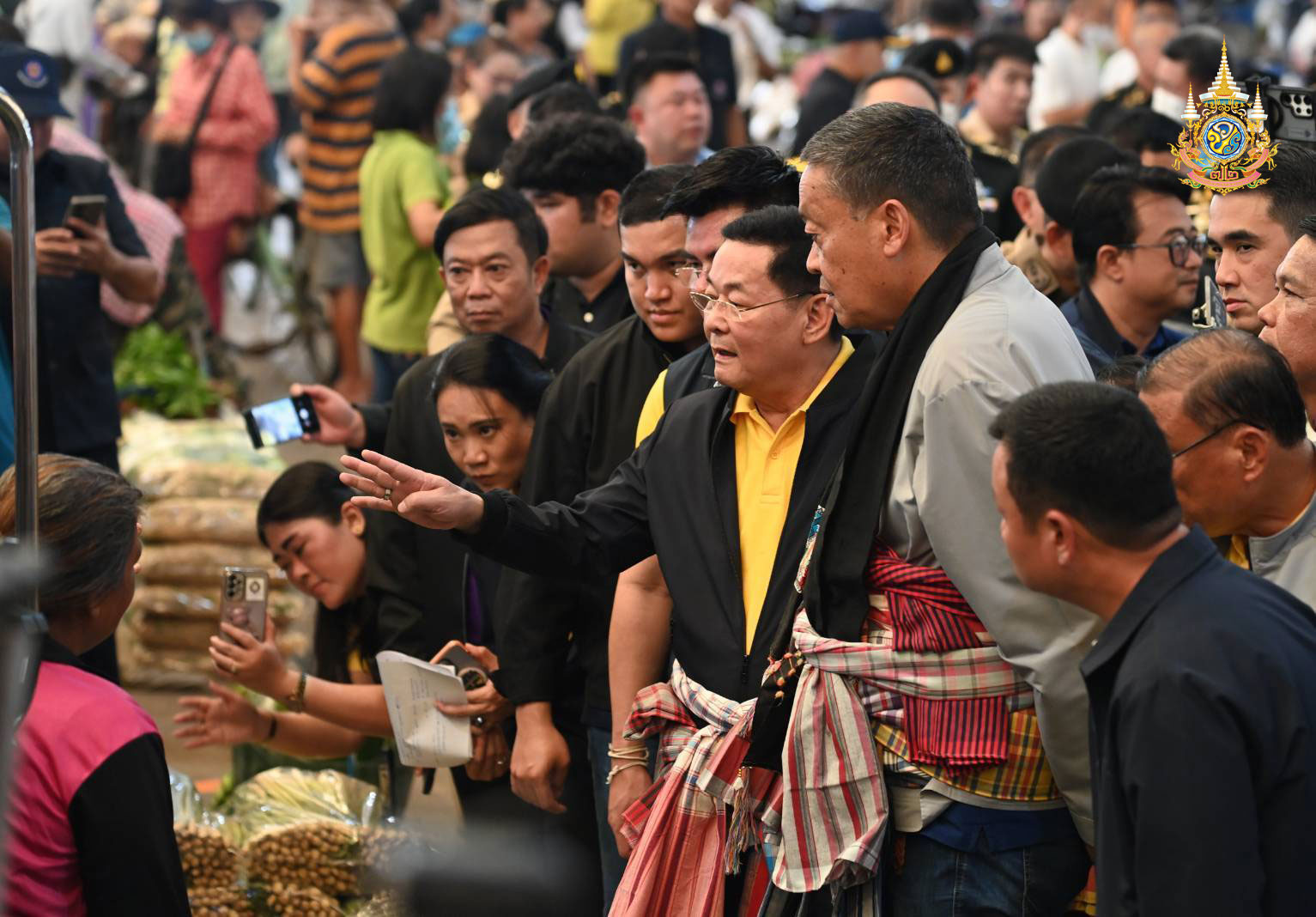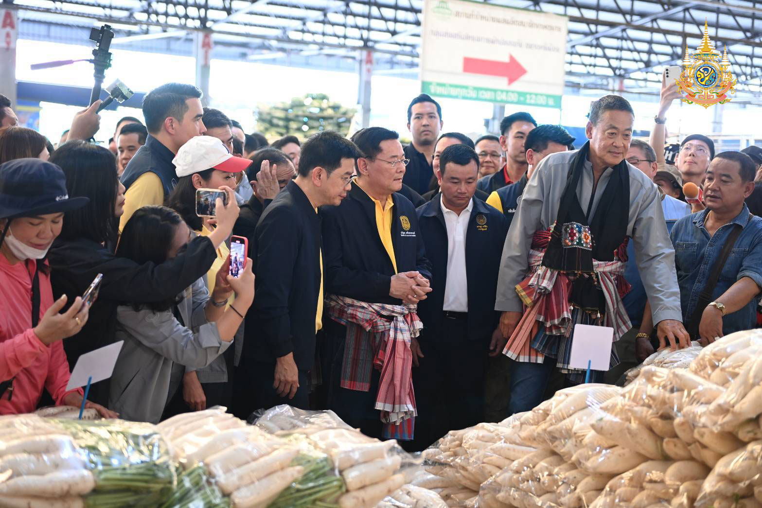 นอกจากนี้ นายกฯ ยังกล่าวต่ออีกว่า “ระยะหลังมีปัญหาผักแพง อย่างเช่น พริก ปัจจุบันกิโลละ 500 บาทเนื่องจากประสบปัญหาภัยแล้ง จึงขอให้กรมชลประทานการจัดสรรเรื่องน้ำได้ดีขึ้น ซึ่งจะช่วยแก้ไขปัญหาทำให้ผลผลิตดีขึ้น ราคาลดลง ค่าครองชีพอยู่ในเกณฑ์ที่สามารถทำได้ ขอฝากเพราะเนื่องจากภาคเกษตรกรมีความสำคัญกับเศรษฐกิจไทย จึงอยากให้เรามีศูนย์กระจายสินค้าที่ดีมีระบบค้าขายสินค้าที่ดีจะทำให้ชีวิตความเป็นอยู่ของพี่น้องประชาชนดีขึ้น โดยพี่น้องเกษตรกรต้องมีรายได้เพิ่มขึ้น 3 เท่า ในปี 2567 ตนมองว่าตลาดศรีเมืองเป็นแม่แบบที่ดี ลดการค้าขายผ่านพ่อค้าคนกลาง ค้าขายได้ในราคาที่ดีเหมาะสม และได้ฝากให้กระทรวงพาณิชย์ช่วยดูแลราคาหอมแดงจากมือเกษตรกรต้องไม่ต่ำกว่าโลละ 20 บาท และรายได้ต้องเข้ากระเป๋าพี่น้องประชาชนได้มากที่สุด”