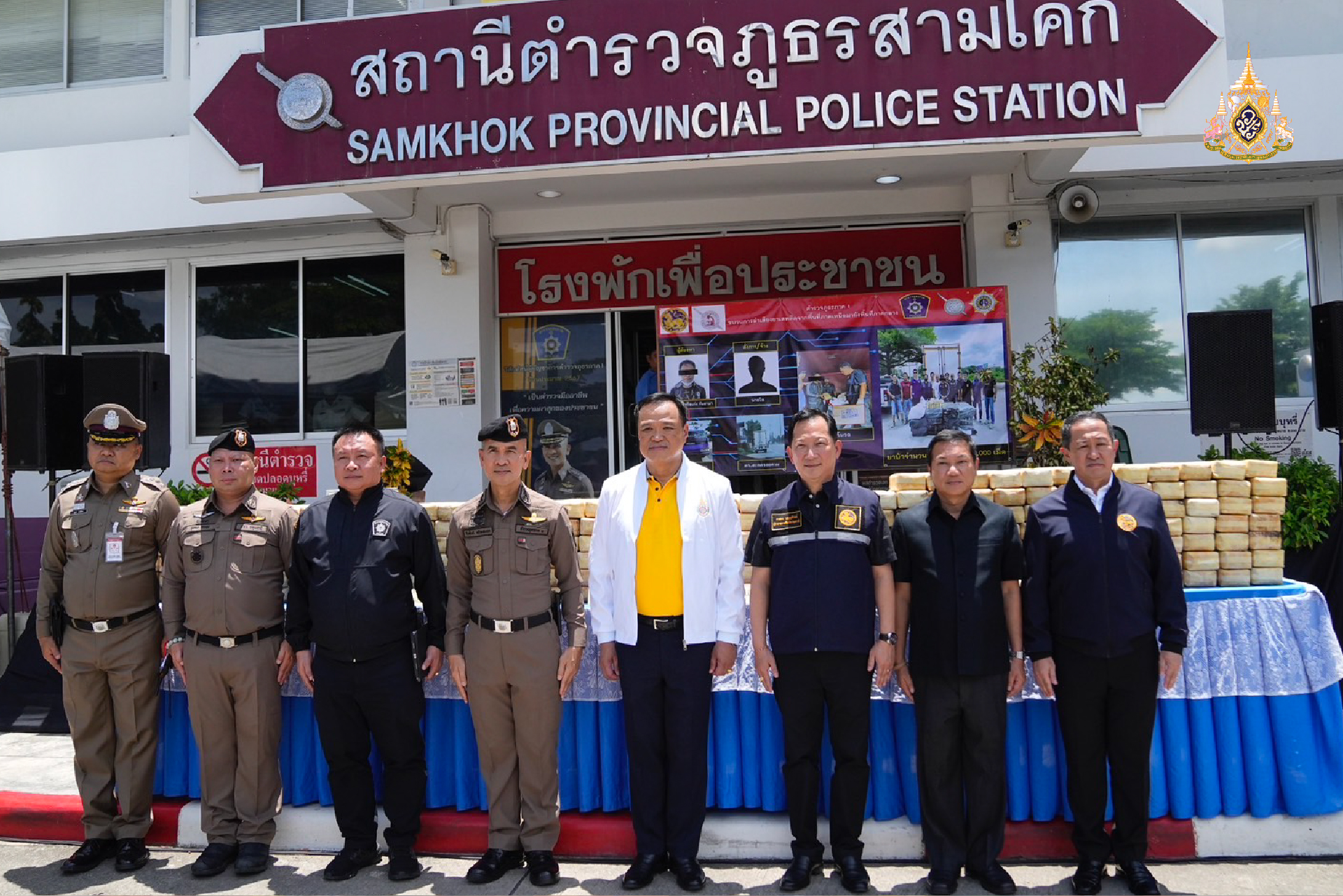 วันที่ 8 มิถุนายน 2567 ที่สถานีตำรวจภูธรสามโคก อ.สามโคก จ.ปทุมธานี นายอนุทิน ชาญวีรกูล รองนายกรัฐมนตรีและรัฐมนตรีว่าการกระทรวงมหาดไทย พร้อมด้วยฝ่ายปกครองและเจ้าหน้าที่ตำรวจ นำแถลงผลการจับกลุ่มเครือข่ายยาเสพติด ยึดยาบ้าจำนวนกว่า 4.8 ล้านเม็ด มูลค่ากว่า 140 ล้านบาท ในพื้นที่ ตำบลเชียงรากใหญ่ อำเภอสามโคก จังหวัดปทุมธานี