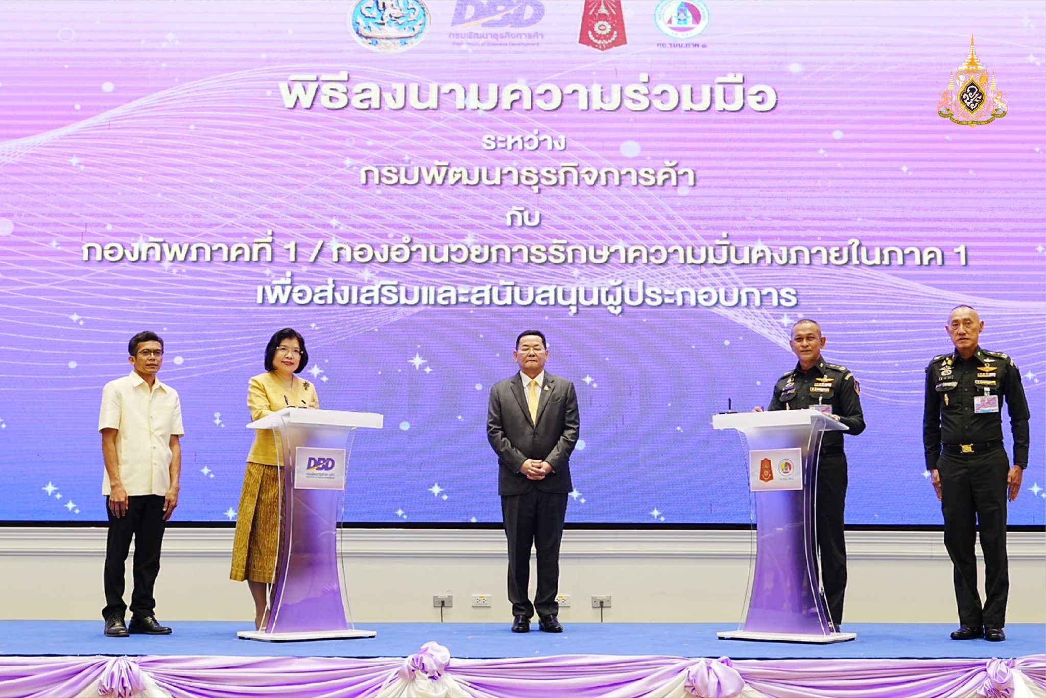 นางอรมน ทรัพย์ทวีธรรม อธิบดีกรมพัฒนาธุรกิจการค้า กล่าวว่า การ MOUครั้งนี้เป็นก้าวสำคัญของความร่วมมือที่ขยายผลการดำเนินงานเชิงรุกกับกองทัพภาคที่ 1/กอ.รมน.ภาค.1 ที่มีการสนับสนุนกลุ่มอาชีพของชุมชนในพื้นที่กลุ่มจังหวัดภาคกลางและภาคตะวันออก กรมพัฒน์ยินดีที่จะร่วมมือและสร้างโอกาสทางการค้าการตลาด พัฒนาองค์ความรู้ การพัฒนาสินค้าและด้านอื่นๆที่จำเป็นในการประกอบธุรกิจโดยกิจกรรมแรกที่จะเกิดขึ้นมี 2 กิจกรรม ได้แก่ งานมหกรรมรวมพลัง SME ไทย : THAILAND SME Synergy Expo 2024 ในวันที่ 19 - 23 มิถุนายน 2567 ณ ศูนย์ประชุมแห่งชาติสิริกิติ์ ของกระทรวงพาณิชย์ และ จะมีผู้ประกอบการไปออกงาน OTOP Midyear sale ในวันที่ 8-16 มิถุนายน 2567 ณ อิมแพ็ค เมืองทองธานีด้วย เชื่อว่าการดำเนินการครั้งนี้ จะ สร้างการเติบโต ความมั่นคงทางเศรษฐกิจของไทย และตอบสนองนโยบายของรัฐบาลได้