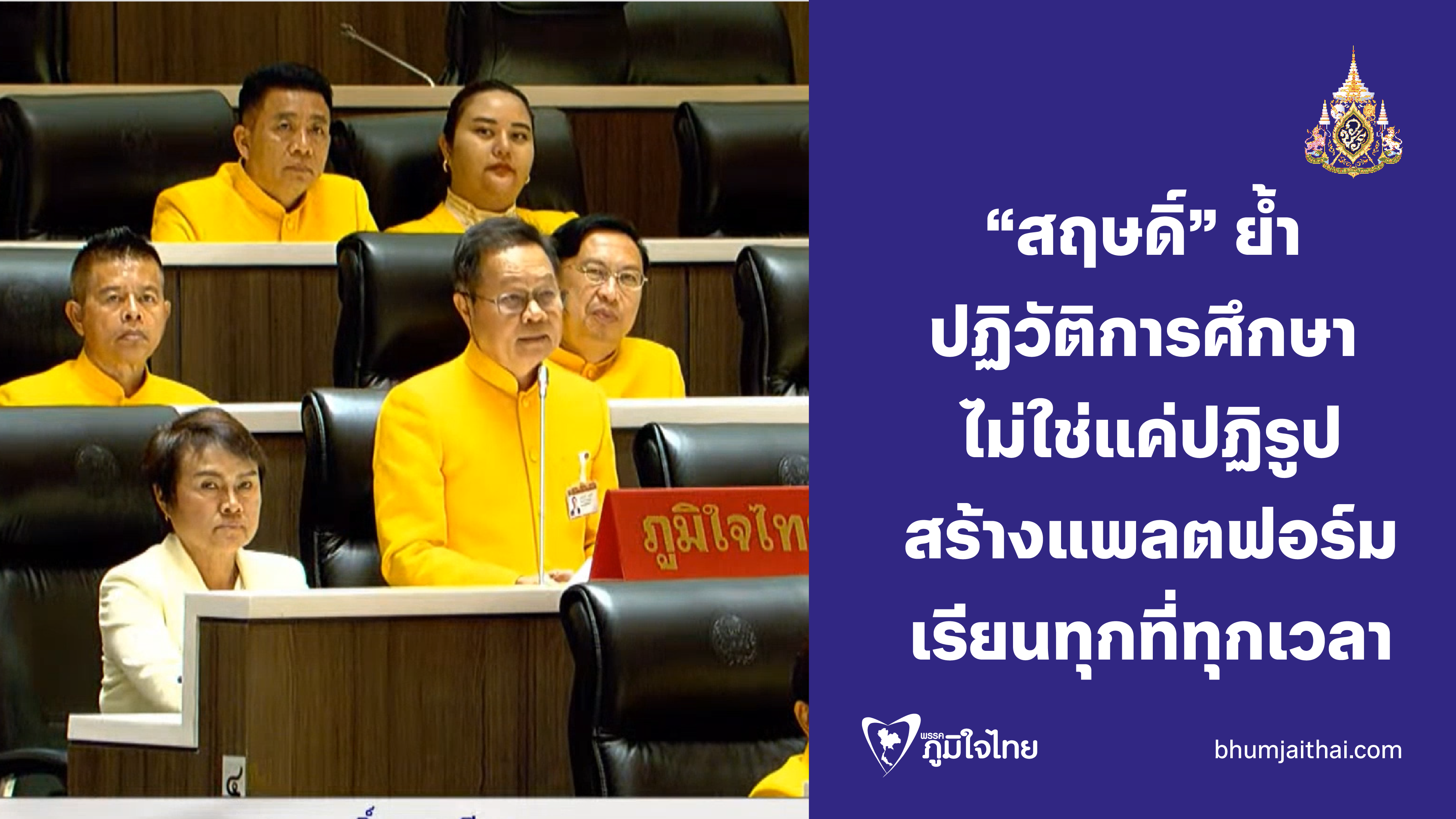 พรรคภูมิใจไทยมองว่า เราต้องปฏิวัติ ไม่ใช่เพียงแต่ปฏิรูปค่อยเป็นค่อยไปแล้ว วันนี้โลกมันเปลี่ยนแปลงไปวินาทีเป็นไปพร้อมกับแสงแล้ว ไม่ใช่เปลี่ยนไปอย่างสมัยก่อนที่ไปก็ล้อเกวียนหรือรถสิบล้อ เราควรจะปฏิวัติ ส่วนที่เสนอไว้ไม่ว่าจะเป็นเรื่องความไม่เสมอภาค ความเหลื่อมล้ำ เรื่องของค่าใช้จ่ายโดยเฉพาะเด็กนักเรียนครอบครัวผู้ปกครองต้องใช้จ่ายกับเรื่องของเด็กเรียนพิเศษ เด็กที่ต้องให้ค่ารถ ค่าเสื้อผ้า อุปกรณ์การเรียนเพิ่มขึ้นทุกขั้นตอน พรรคภูมิใจไทยได้นําเสนอก็ควรที่จะมีการปรับเปลี่ยนโครงสร้างของงบประมาณในเรื่องแพลตฟอร์ม ถูกตัดไปถึง 2,000 กว่าล้านเกินกว่าครึ่งหนึ่ง