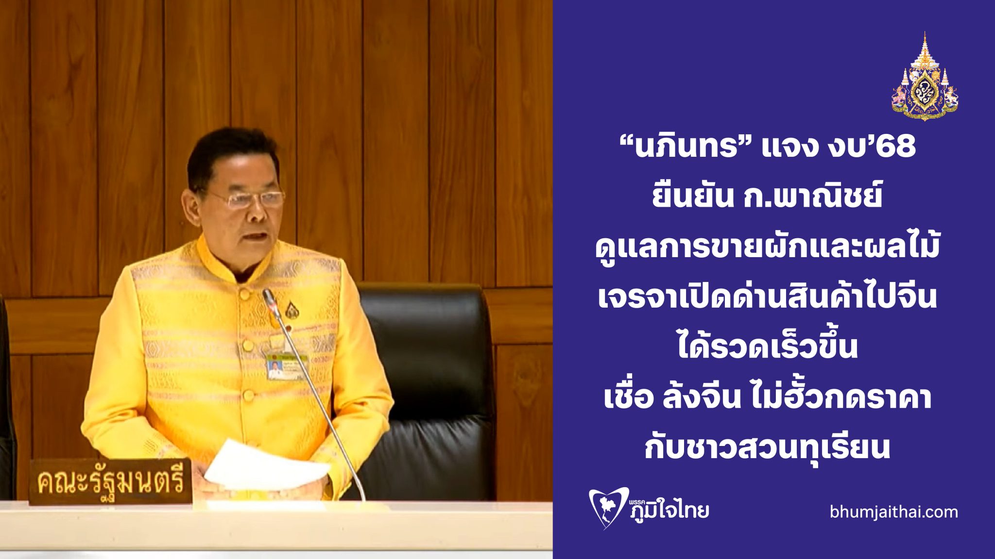 นภินทร แจง งบ’68 ยืนยัน ก.พาณิชย์ ดูแลการขายผักและผลไม้ เจรจาเปิดด่าน ขนส่งสินค้าไปจีน ได้รวดเร็วมากขึ้น เชื่อ ล้งจีน ไม่ฮั้วกดราคาซื้อกับชาวสวนทุเรียน