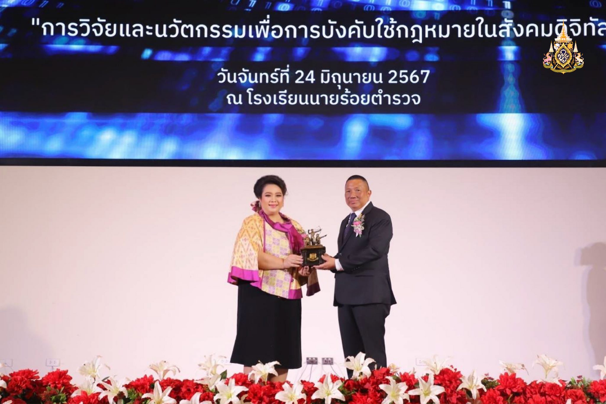 เมื่อวันที่ 24 มิ.ย. 2567 นางสาวศุภมาส อิศรภักดี รมว.การอุดมศึกษา วิทยาศาสตร์ วิจัยและนวัตกรรม เป็นประธานเปิดการประชุมวิชาการระดับชาติ โรงเรียนนายร้อยตำรวจ ประจำปี พ.ศ. 2567 ซึ่งจัดภายใต้หัวข้อ “การวิจัยและนวัตกรรมเพื่อการบังคับใช้กฎหมายในสังคมดิจิทัล” โดยมี พล.ต.ท.ดร.เสนิต สำราญสำรวจกิจ ผู้บัญชาการโรงเรียนนายร้อยตำรวจ ผู้บริหารโรงเรียนนายร้อยตำรวจ และผู้สนใจเข้าร่วมกว่า 1,000 คน ณ ห้องประชุมเตมียเวส โรงเรียนนายร้อยตำรวจ