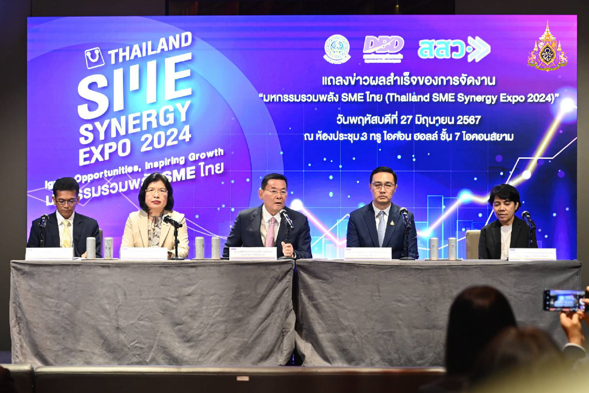 นายนภินทร ศรีสรรพางค์ รัฐมนตรีช่วยว่าการกระทรวงพาณิชย์ เปิดเผยผลการจัดมหกรรมรวมพลัง SME ไทย (Thailand SME Synergy Expo 2024) ระหว่างวันที่ 19 - 23 มิถุนายน ที่ผ่านมา รวมทั้งหมด 5 วัน ว่า ผลสำเร็จเกินเป้าหมายที่กำหนดไว้เป็นอย่างมาก เพราะการจัดงานให้กับผู้ว่างงานและผู้ประกอบการให้ SME มืออาชีพให้มีการเติบโตแบบธุรกิจแบบครบวงจร ตามที่ได้กล่าวว่า “มาแต่ตัว มาด้วยรอยยิ้ม มาด้วยใจที่มุ่งมั่นในการประกอบอาชีพ” จากที่ได้จัดมาทั้ง 5 วัน เราได้จัดองค์กรต่างๆ ที่เป็นพันธมิตรร่วมกันกว่า 90 หน่วยงานที่พร้อมจะสร้างความเข้มแข็งให้กับ SME ไทย โดยเต็มไปด้วยความรู้ต่างๆ เครื่องมือที่จำเป็นต่อการดำเนินธุรกิจในยุคดิจิทัล เงินทุนดอกเบี้ยต่ำ และทำการค้าที่คัดสรรมาเป็นอย่างดี ตลอดจนการเจรจาธุรกิจทั้งในประเทศและต่างประเทศโดยภาพรวมการจัดการในครั้งนี้บรรลุเป้าหมายตามที่ได้ตั้งไว้ ไม่ว่าจะเป็นเรื่องทำเลการค้ามีผู้สนใจมาจับจองในทำเลที่อยากทำธุรกิจ ธุรกิจแฟรนไชส์มีผู้สนใจ มีการจับคู่ธุรกิจเกินกว่าเป้าหมายที่วางไว้ ในส่วนของการเสริมทักษะต่างๆ สร้างความเข้มแข็งให้SME มีผู้สนใจทั้งออนไลน์และออฟไลน์เป็นจำนวนมากแสดงให้เห็นว่าการจัดงานที่ผ่านมาประสบความสำเร็จเกินเป้าที่วางไว้ อย่างไรก็ตามกระทรวงพาณิชย์มีเป้าหมายที่จะพัฒนา SME ให้เติบโตขึ้น โดยเป้าหมายที่วางไว้ คือ มีส่วนแบ่งในมวลรวมของรายได้จาก 35% เป็น 40% ในปี 2570 และนี่ถือเป็นกิจกรรมหนึ่งที่แสดงให้เห็นว่า คนไทยได้มีงานมีอาชีพ และมีรายได้ที่เพิ่มขึ้นแน่นอน
