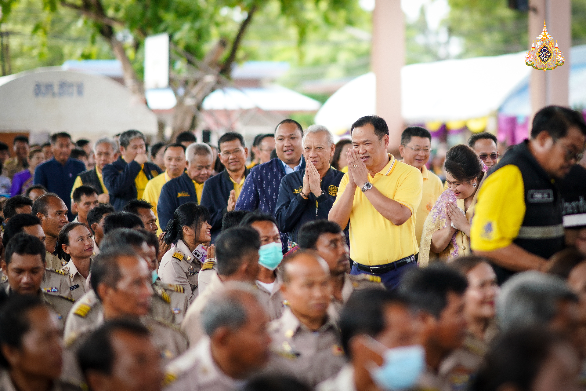 วันที่ 1 กรกฎาคม 2567 ที่หอประชุมโรงเรียนจักราชวิทยา ต.จักราช อ.จักราช จ.นครราชสีมา นายอนุทิน ชาญวีรกูล รองนายกรัฐมนตรี และรัฐมนตรีว่าการกระทรวงมหาดไทย ได้นำคณะรัฐมนตรีบางส่วนลงพื้นที่ตรวจติดตามความคืบหน้าของนโยบายรัฐบาล โดยมีประชาชนมาต้อนรับเป็นจำนวนมาก