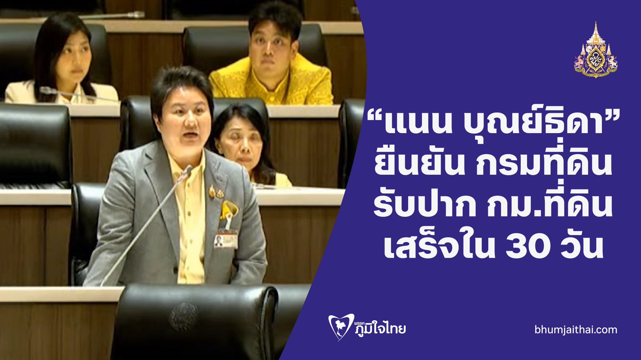 “แนน บุณย์ธิดา” ยืนยัน กรมที่ดิน รับปากวิปรัฐบาลกฎหมายที่ดินใช้เวลา 30 วัน
