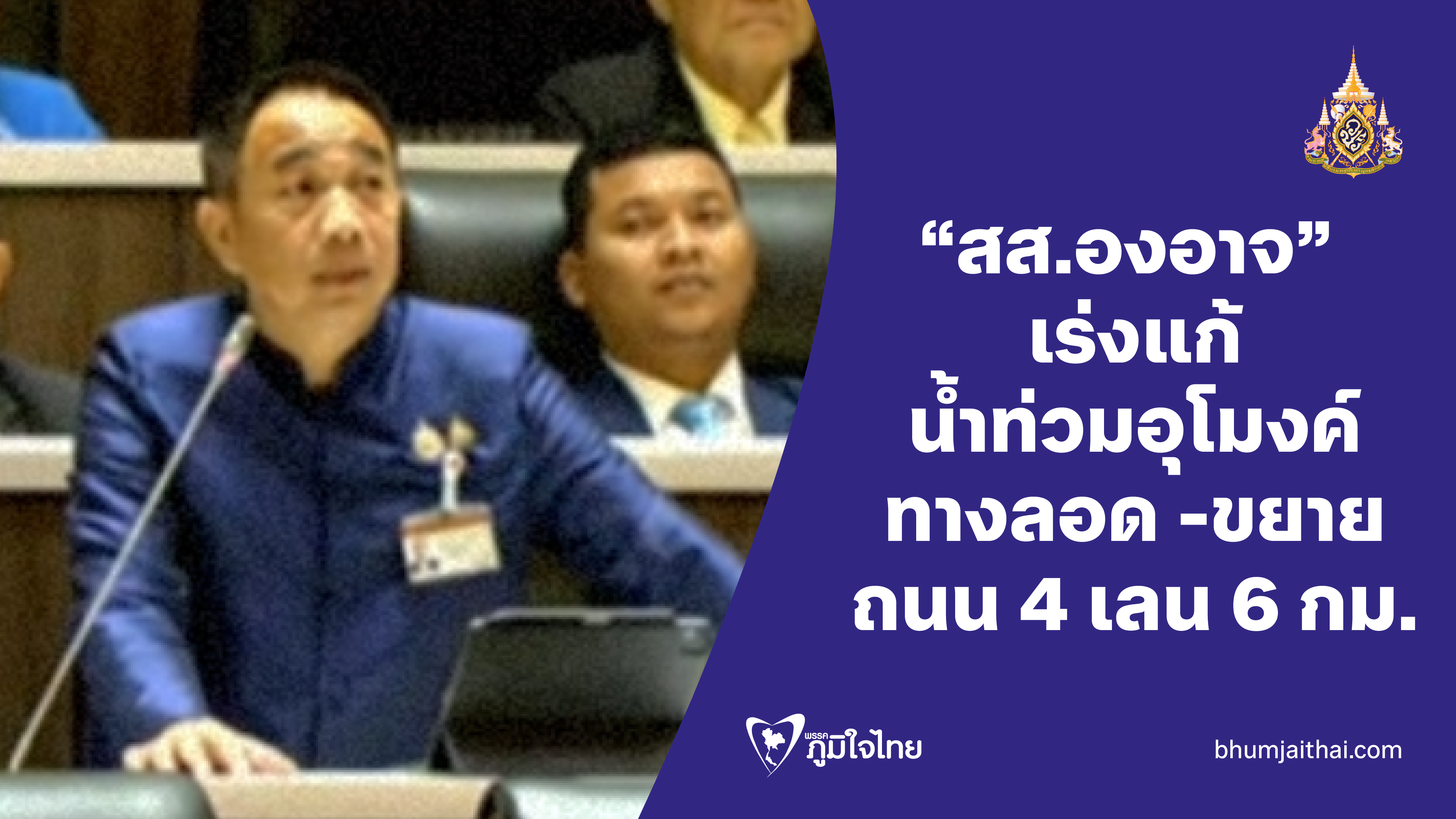 "สส.องอาจ" หารือสภาฯ เร่งแก้น้ำท่วมอุโมงค์ทางลอด -ขยายถนน 4 เลน อีก 6 กม.ให้เสร็จโดยเร็ว