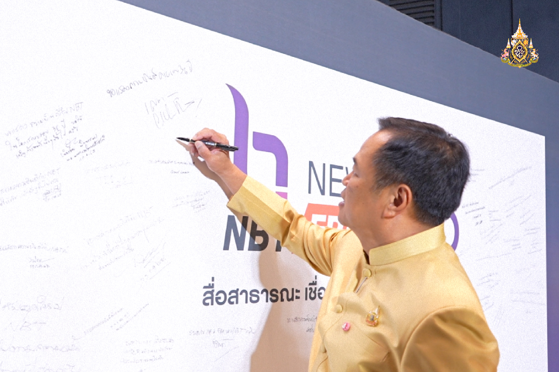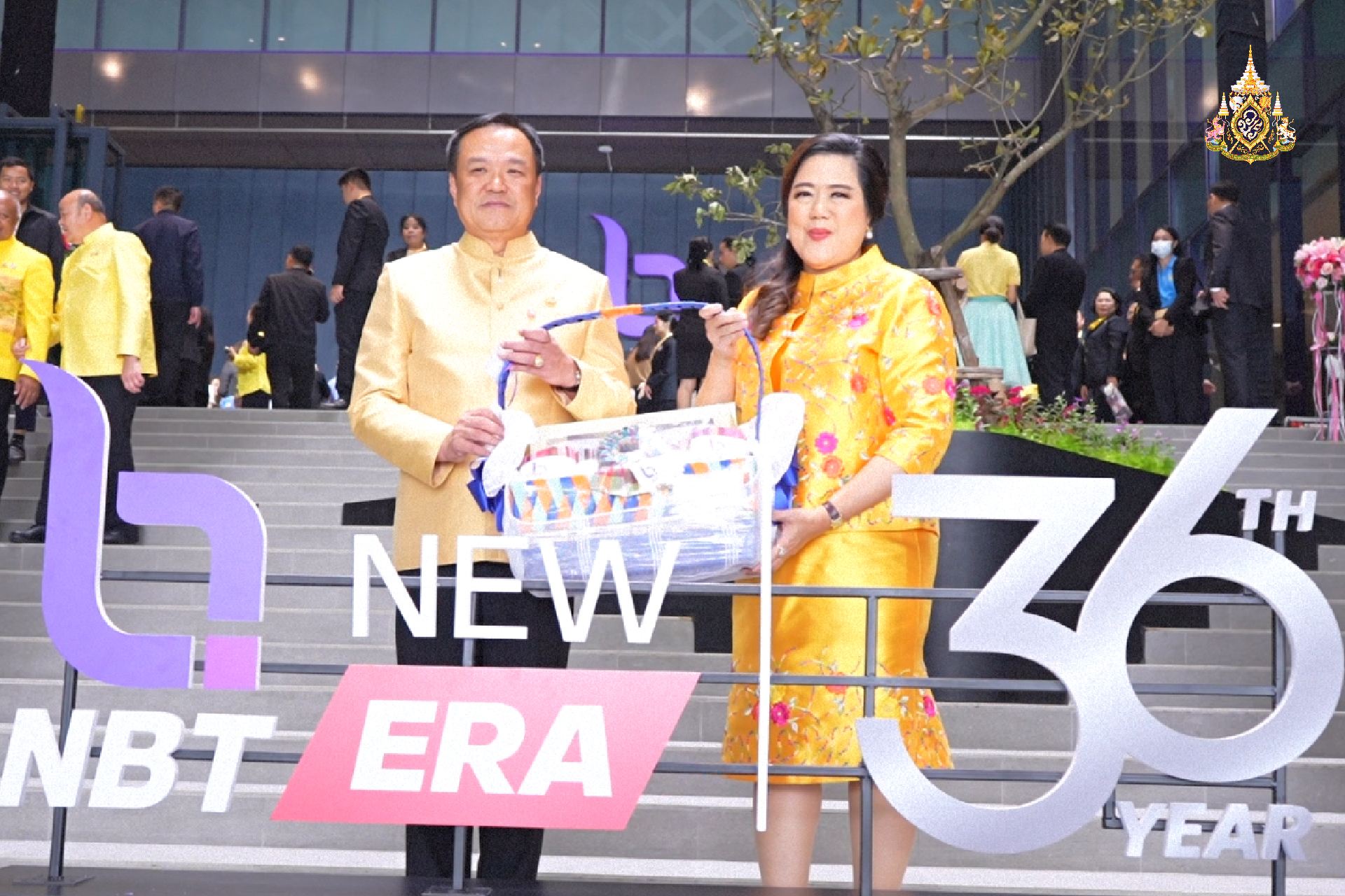นายอนุทิน ชาญวีรกูล หัวหน้าพรรคภูมิใจไทย รองนายกรัฐมนตรีและรัฐมนตรีว่าการกระทรวงมหาดไทย พร้อมด้วยนางสาวศุภมาส อิศรภักดี รัฐมนตรีว่าการกระทรวงการอุดมศึกษา วิทยาศาสตร์ วิจัยและนวัตกรรม และเหรัญญิกพรรคภูมิใจไทย มอบกระเช้าดอกผลไม้แสดงความยินดี เนื่องในโอกาสครบรอบ 36 ปี NBT