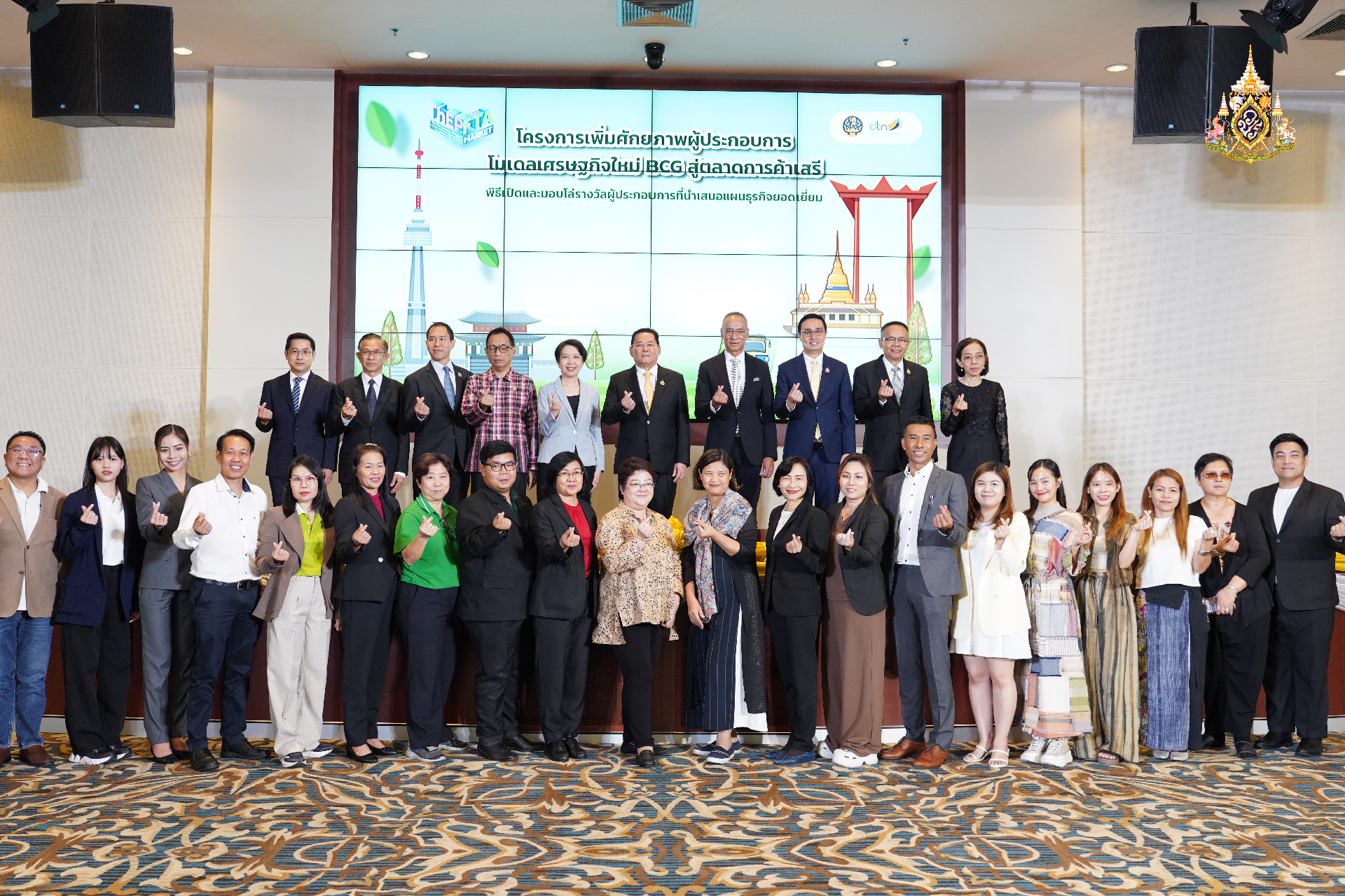 รมช.พณ. นภินทรฯ เปิดโครงการ “เพิ่มศักยภาพผู้ประกอบการโมเดลเศรษฐกิจใหม่ BCG สู่ตลาดการค้าเสรี” ปี 3 พร้อมมอบโล่รางวัลผู้ประกอบการที่นำเสนอแผนธุรกิจยอดเยี่ยม 10 ราย เตรียมนำผู้ประกอบการบุกเกาหลีใต้ สำรวจตลาดไฮเปอร์มาร์เก็ต เจาะเทรนด์การบริโภคสินค้ารักษ์โลก BCG ปลายเดือนกรกฎาคมนี้