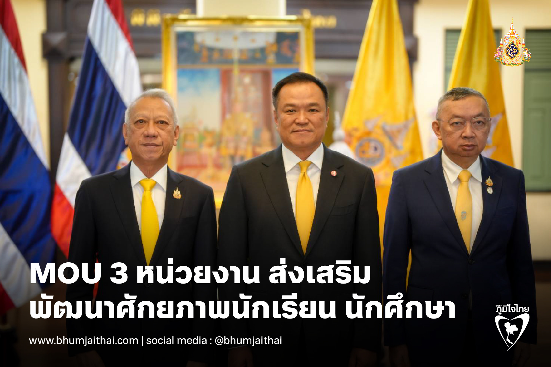 "อนุทิน" ประธาน MOU 3 หน่วยงาน ส่งเสริม พัฒนาศักยภาพนักเรียน นักศึกษา และกำลังคนทุกช่วงวัย สร้างกำลังคนสมรรถนะสูงขับเคลื่อนประเทศ