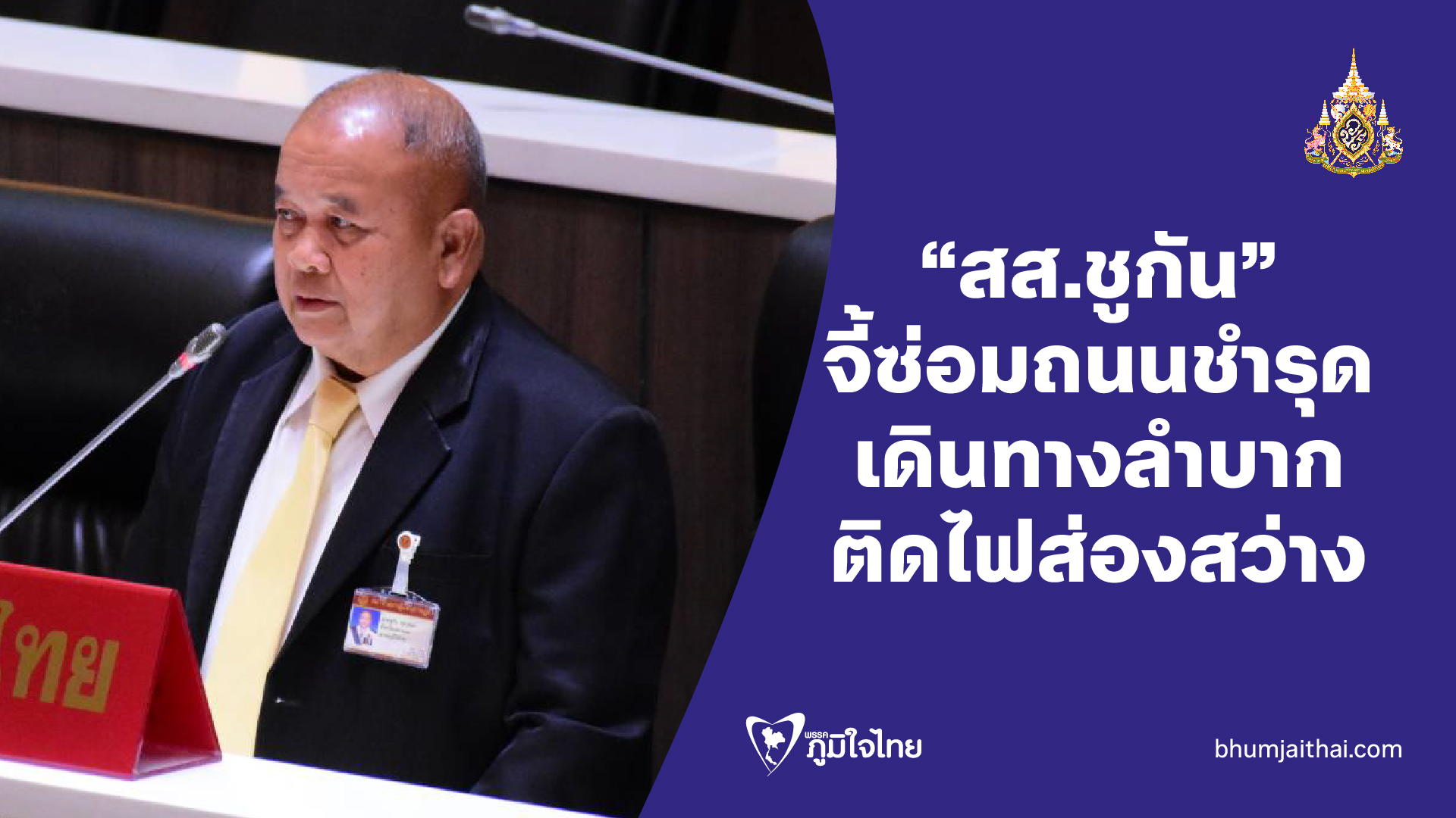 "สส.ชูกัน" หารือสภาฯ ชาวบ้านเดินทางติดต่อราชการลำบาก ถนนชำรุดเสียหาย พร้อมขอติดไฟส่องสว่างถนน เพราะเกิดอุบัติเหตุบ่อยครั้ง