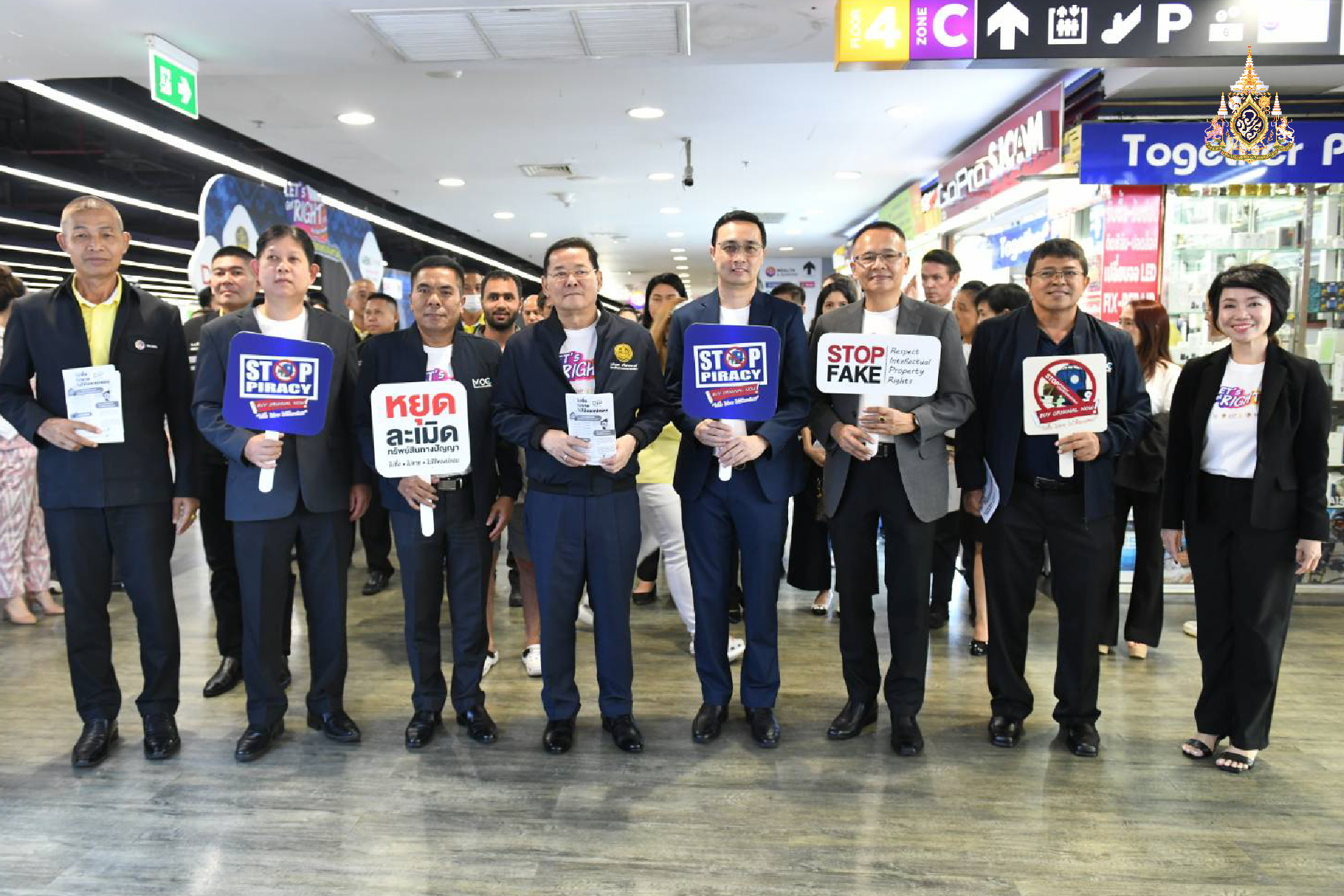 รมช.พณ. นภินทร นำทีมกรมทรัพย์สินทางปัญญา พร้อมหน่วยงานพันธมิตรด้านการป้องปรามการละเมิดทรัพย์สินทางปัญญา จัดกิจกรรม“Let’s Get Right by Soft Power” ต่อยอด “กางเกงช้าง” สู่กางเกงลายอัตลักษณ์จังหวัด และเดินรณรงค์กระตุ้นจิตสำนึกด้านการเคารพสิทธิในทรัพย์สินทางปัญญา สร้างการมีส่วนร่วมของภาคประชาชนและภาคเอกชน ไม่ซื้อ ไม่ขาย ไม่ใช้ของปลอม เมื่อวันที่ 1 สิงหาคม 2567 ณ ศูนย์การค้า เอ็ม บี เค เซ็นเตอร์