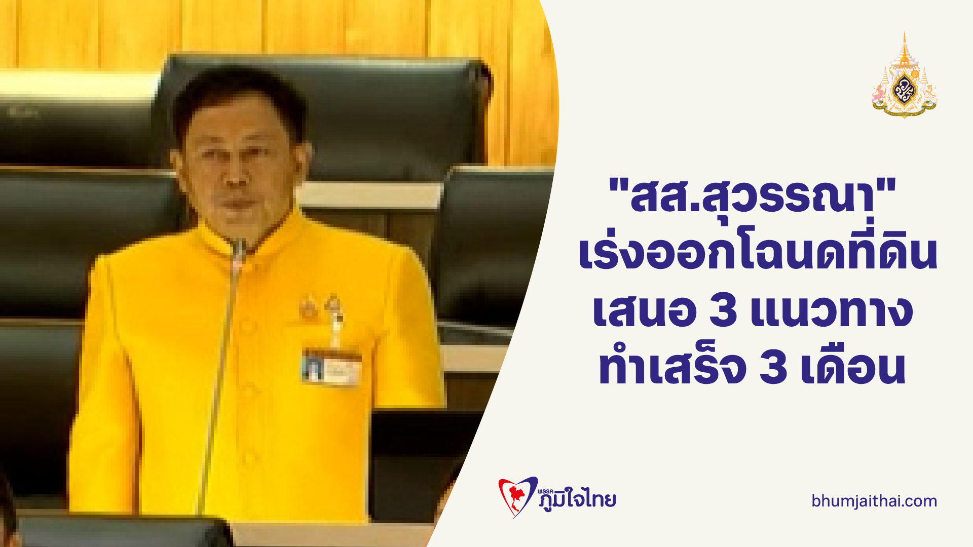 "สส.สุวรรณา" เร่งออกโฉนดที่ดิน พร้อมเสนอ 3 แนวทาง ทำเสร็จ 3 เดือน