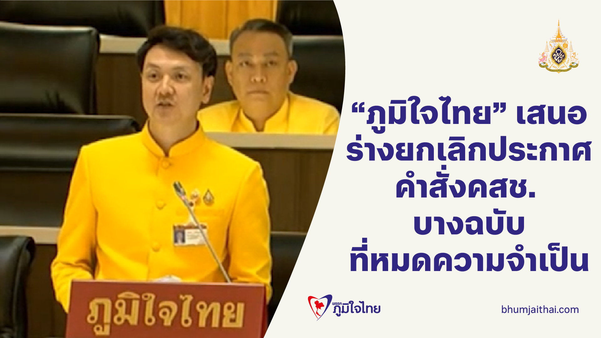 ภูมิใจไทย เสนอร่าง พ.ร.บ. ยกเลิกประกาศและคำสั่ง คสช. บางฉบับที่หมดความจำเป็น และไม่เหมาะสมกับสถานการณ์ปัจจุบัน
