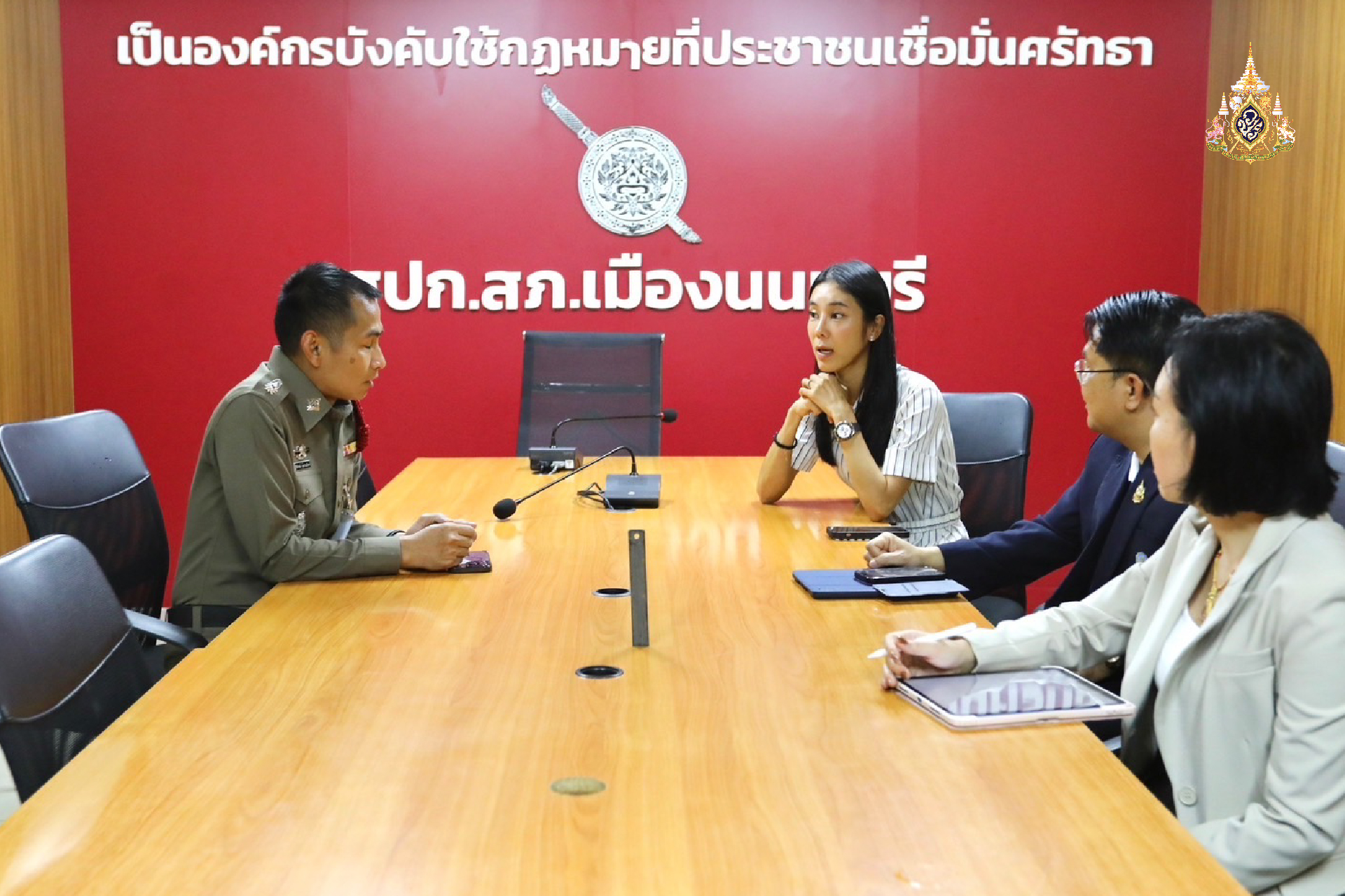 เมื่อวันที่ 17 ส.ค.67 น.ส.สุชาดา แทนทรัพย์ เลขานุการ รมว.การอุดมศึกษา วิทยาศาสตร์ วิจัยและนวัตกรรม (อว.) พร้อมนายวันนี นนท์ศิริ ผู้ช่วยปลัดกระทรวง อว.ได้รับมอบหมายจาก น.ส.ศุภมาส อิศรภักดี รมว.กระทรวง อว.เดินทางไปยัง สภ.นนทบุรี จ.นนทบุรี เพื่อติดตามความคืบหน้ากรณีนักศึกษามหาวิทยาลัยเทคโนโลยีสุวรรณภูมิ(มทร.สุวรรณภูมิ) วิทยาเขตนนทบุรี ถูกรุ่นพี่รุมทำร้าย เมื่อไปถึง น.ส.สุชาดาและผู้ช่วยปลัดกระทรวง อว.ได้พูดคุยกับ พ.ต.ต.ฐิติปกรณ์ คุ้มปานอินทร์ สว.สส. สภ.เมืองนนทบุรี ใช้เวลาประมาณ 15 นาที