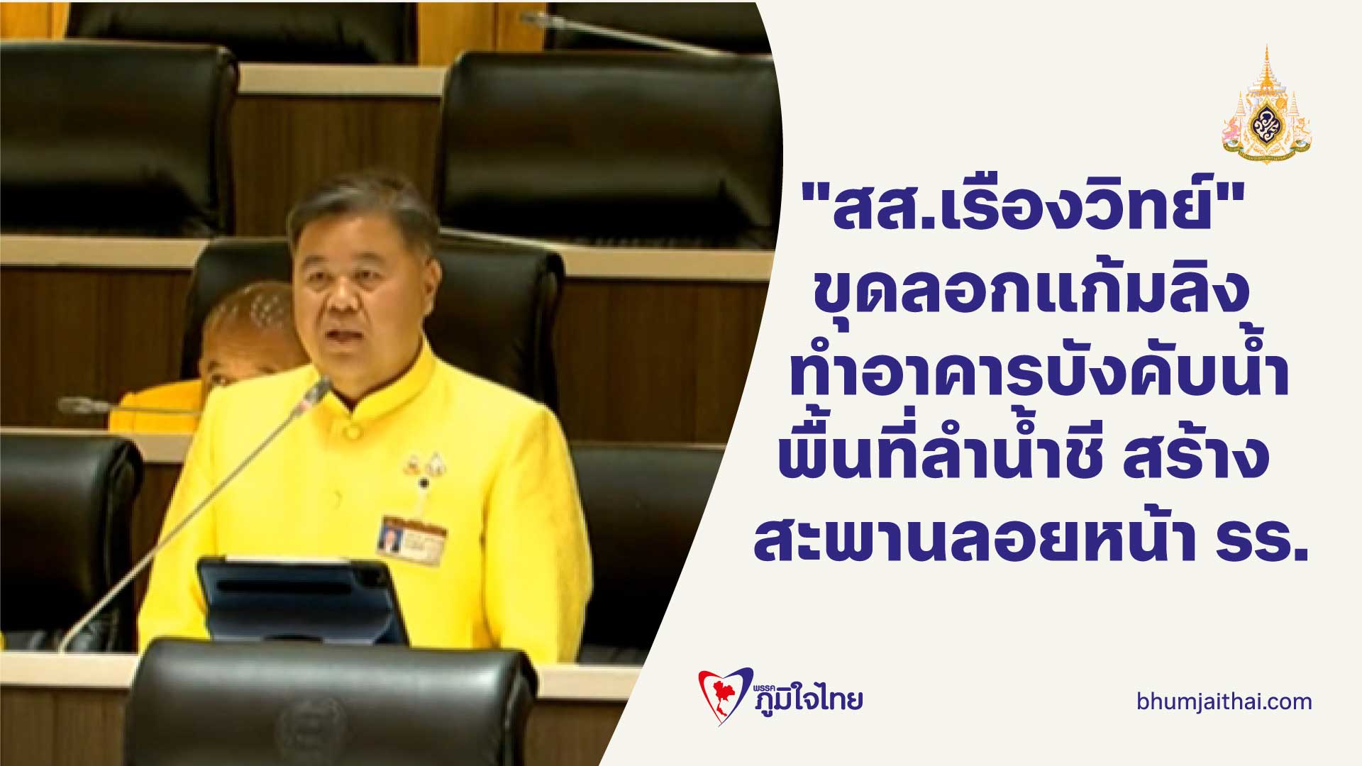 "สส.เรืองวิทย์" หารือสภาฯ ขอกรมชลประทานขุดลอกแก้มลิง และทำอาคารบังคับน้ำ เหตุลำน้ำชีแห้งขอด พร้อมสร้างสะพานข้ามถนนหน้าโรงเรียน หลังนักเรียนต้องวัดดวงข้ามถนนจนเกิดอุบัติเหตุบ่อยครั้ง