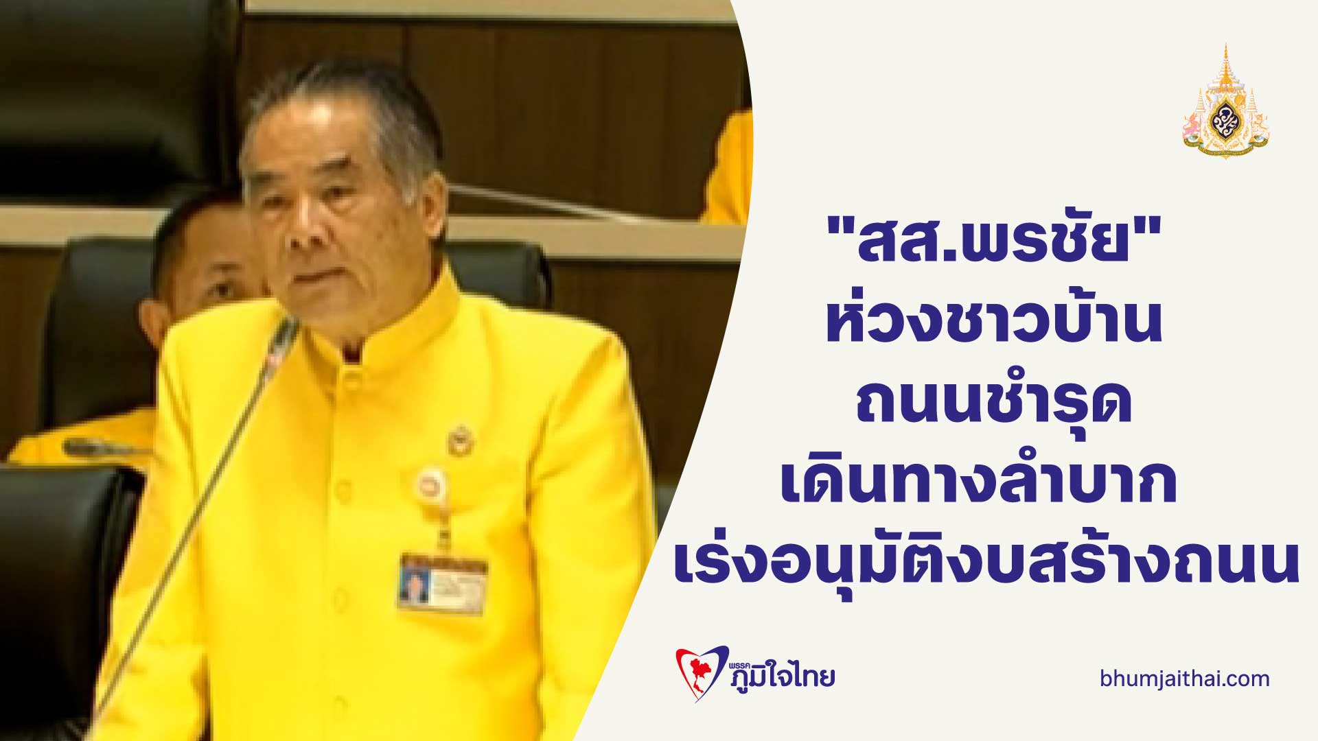"สส.พรชัย" หารือสภาฯ ห่วงใยชาวบ้านถนนชำรุดเสียหาย เดินทางลำบาก พร้อมเร่งอนุมัติงบประมาณสร้างถนนเชื่อมไปยังจ.นครราชสีมา