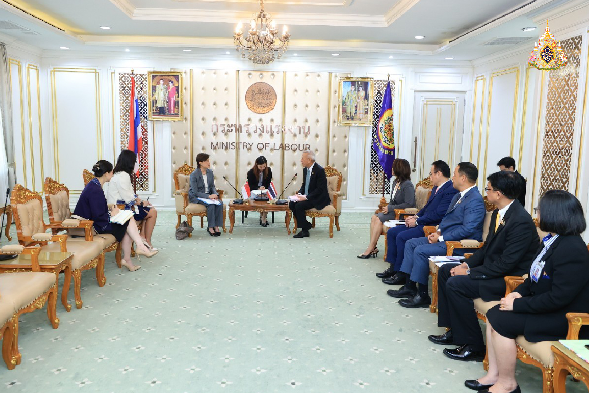 วันที่ 21 สิงหาคม 2567 นายพิพัฒน์ รัชกิจประการ รัฐมนตรีว่าการกระทรวงแรงงาน ให้การต้อนรับ นางสาวหว่อง เสี่ยว ผิง แคเทอริน (Ms.Wong Siow Ping Catherine) เอกอัครราชทูตวิสามัญผู้มีอำนาจเต็มแห่งสาธารณรัฐสิงคโปร์ประจำประเทศไทย และคณะ ในโอกาสเข้าพบเพื่อเยี่ยมคารวะและหารือแนวทางการออกวีซ่าให้ผู้ฝึกงานเทคนิคของสิงคโปร์เข้ามาฝึกงานในประเทศไทยและการพัฒนาทักษะเพื่อรองรับตลาดแรงงานในอนาคต ณ ห้องประชุมรัฐมนตรีว่าการกระทรวงแรงงาน ชั้น 6 อาคารกระทรวงแรงงาน