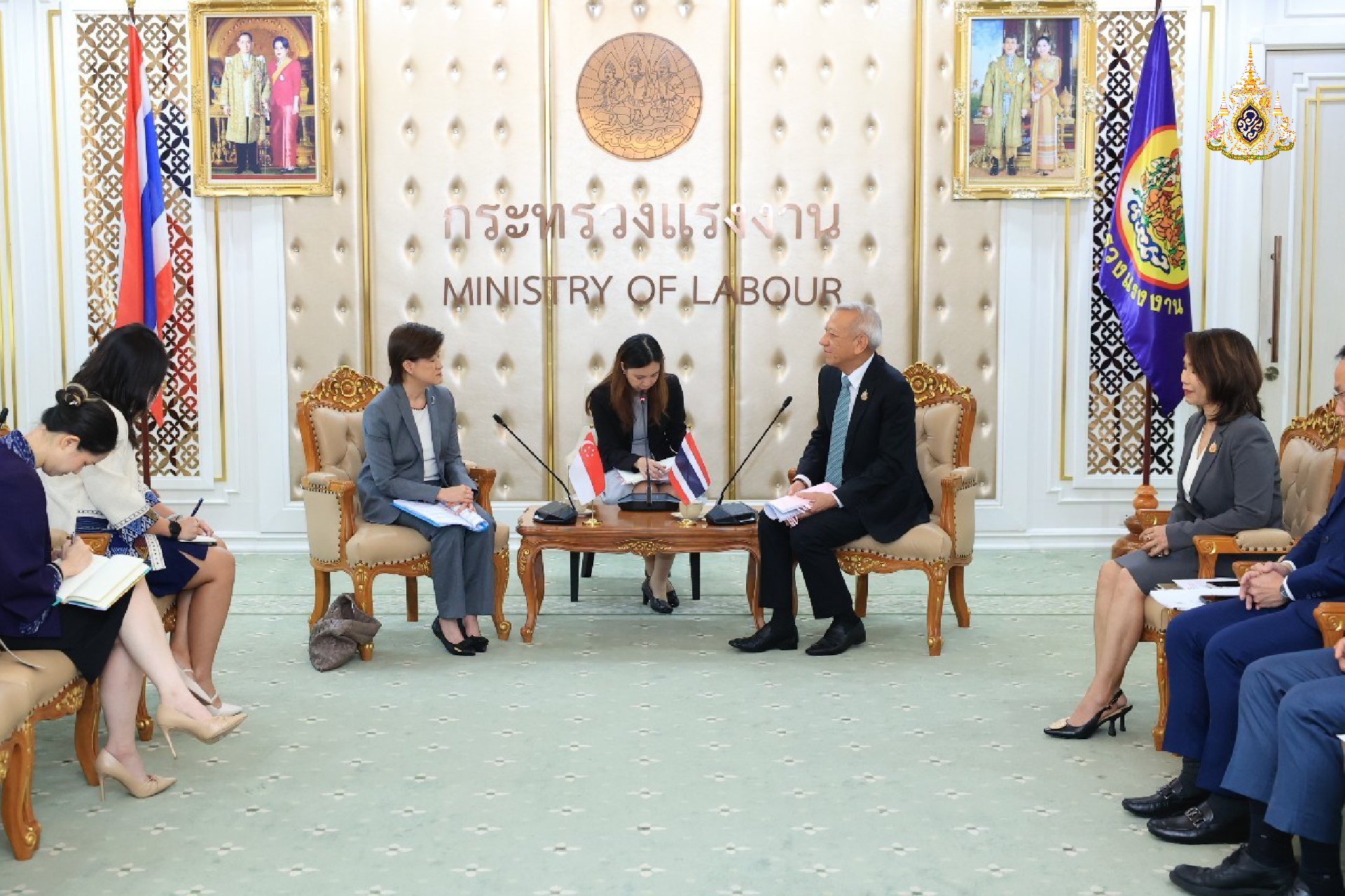 ด้าน นางสาวหว่อง เสี่ยว ผิง แคเทอริน (Ms.Wong Siow Ping Catherine) เอกอัครราชทูตวิสามัญผู้มีอำนาจเต็มแห่งสาธารณรัฐสิงคโปร์ประจำประเทศไทย กล่าวว่า ดิฉันขอขอบคุณท่านรัฐมนตรีว่าการกระทรวงแรงงาน และคณะ ที่เปิดโอกาสให้เข้าพบและหารือร่วมกันในวันนี้ สิงคโปร์และประเทศไทยทั้งสองฝ่ายมีความสัมพันธ์กันมาอย่างยาวนาน จะเห็นได้ว่านักท่องเที่ยวชาวสิงคโปร์ 1 ใน 5 ของจำนวนประชากรทั้งหมดนิยมมาท่องเที่ยวในประเทศไทย และขอขอบคุณท่านรัฐมนตรีว่าการกระทรวงแรงงานที่ช่วยประสาน ตม.เพื่อออกวีซ่าให้ผู้ฝึกงานของสิงคโปร์ได้เข้ามาฝึกงานในประเทศไทยจาก 3 เดือนเป็น 6 เดือนได้โดยไม่ต้องกลับประเทศ และทางการสิงคโปร์ยินดีต้อนรับท่านรัฐมนตรีว่าการกระทรวงแรงงานและหวังว่าท่านจะได้มาร่วมการประชุมรัฐมนตรีแรงงานอาเซียนหรือ ALMM ครั้งที่ 28 ที่สิงคโปร์จะเป็นเจ้าภาพจัดการประชุมดังกล่าวในเดือนตุลาคมที่จะถึงนี้ด้วย