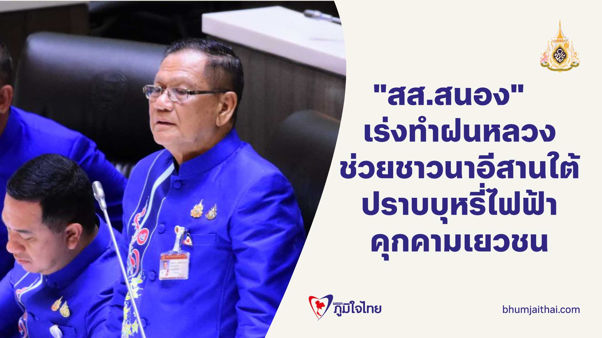 "สส.สนอง" หารือสภาฯ เร่งทําฝนหลวงช่วยชาวนาอีสานใต้ฝนแล้ง พร้อมปราบเข้มบุหรี่ไฟฟ้าระบาดเข้าถึงกลุ่มเยวชน